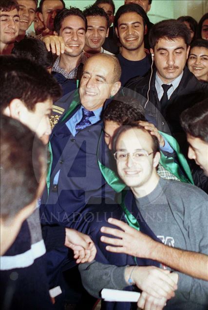 Çok yönlü kişiliği ve başarılı bir iş adamı olmasının yanı sıra tevazusu, samimiyeti ve insan sevgisiyle Türk halkının gönlünü fetheden, halkın, sevgisini "Sakıp Ağa" diyerek gösterdiği Sabancı Holding'in merhum yönetim kurulu başkanı ve Türk iş dünyasının sevilen ismi Sakıp Sabancı, on beş yıl önce hayata veda ederken, geride kendisini özlemle anan bir aile, onlarca dost, binlerce çalışan ve seven milyonlarca insan bıraktı. Sabancı, 5 Kasım 1999'da Fahri Doktora aldığı Çukurova Üniversitesi öğrencileri tarafından omuzlara alındı. (Arşiv)