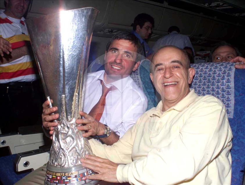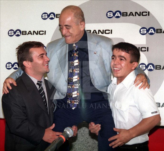 Çok yönlü kişiliği ve başarılı bir iş adamı olmasının yanı sıra tevazusu, samimiyeti ve insan sevgisiyle Türk halkının gönlünü fetheden, halkın, sevgisini "Sakıp Ağa" diyerek gösterdiği Sabancı Holding'in merhum yönetim kurulu başkanı ve Türk iş dünyasının sevilen ismi Sakıp Sabancı, on beş yıl önce hayata veda ederken, geride kendisini özlemle anan bir aile, onlarca dost, binlerce çalışan ve seven milyonlarca insan bıraktı. 18 Mayıs 2000'de UEFA Kupasını kazanan Galatasaray takımı uçakla İstanbul'a geldi. Sabancı (sağda) ve Romen futbolcu Hagi, kupayı birlikte kucakladılar. (Arşiv)
