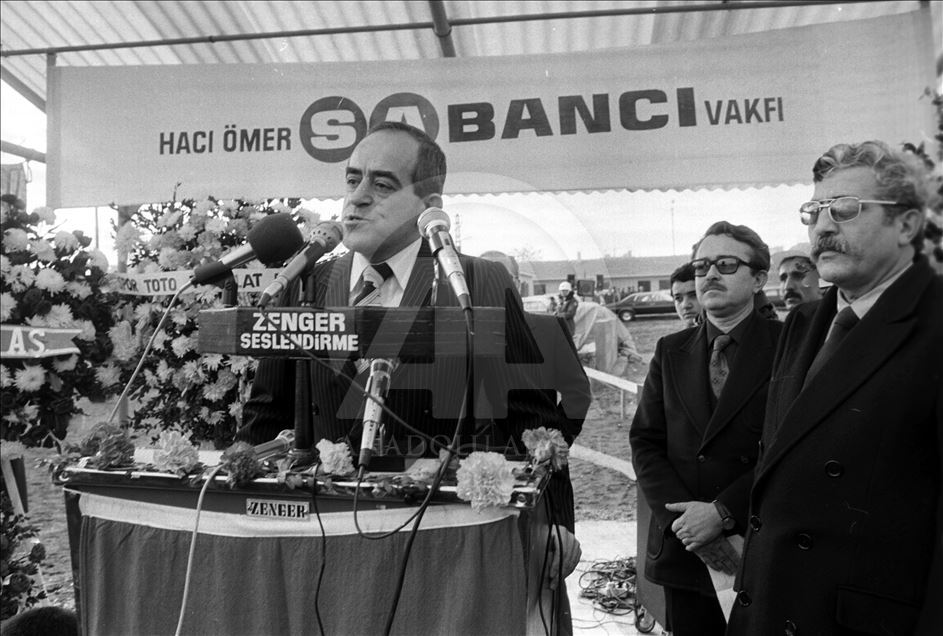 Çok yönlü kişiliği ve başarılı bir iş adamı olmasının yanı sıra tevazusu, samimiyeti ve insan sevgisiyle Türk halkının gönlünü fetheden, halkın, sevgisini "Sakıp Ağa" diyerek gösterdiği Sabancı Holding'in merhum yönetim kurulu başkanı ve Türk iş dünyasının sevilen ismi Sakıp Sabancı, on beş yıl önce hayata veda ederken, geride kendisini özlemle anan bir aile, onlarca dost, binlerce çalışan ve seven milyonlarca insan bıraktı. 1 Nisan 1976'da düzenlenen Türkiye İşveren Sendikası Genel Kurulu'na (soldan sağa) Devlet Bakanı Seyfi Öztürk, Milli Eğitim Bakanı Ali Naili Erdem, Diyanet İşleri Başkanı Lütfi Doğan, iş adamı Sakıp Sabancı, TBMM Başkanı Sabit Osman Avcı ve Şevket Kazan katıldı. (Arşiv)
