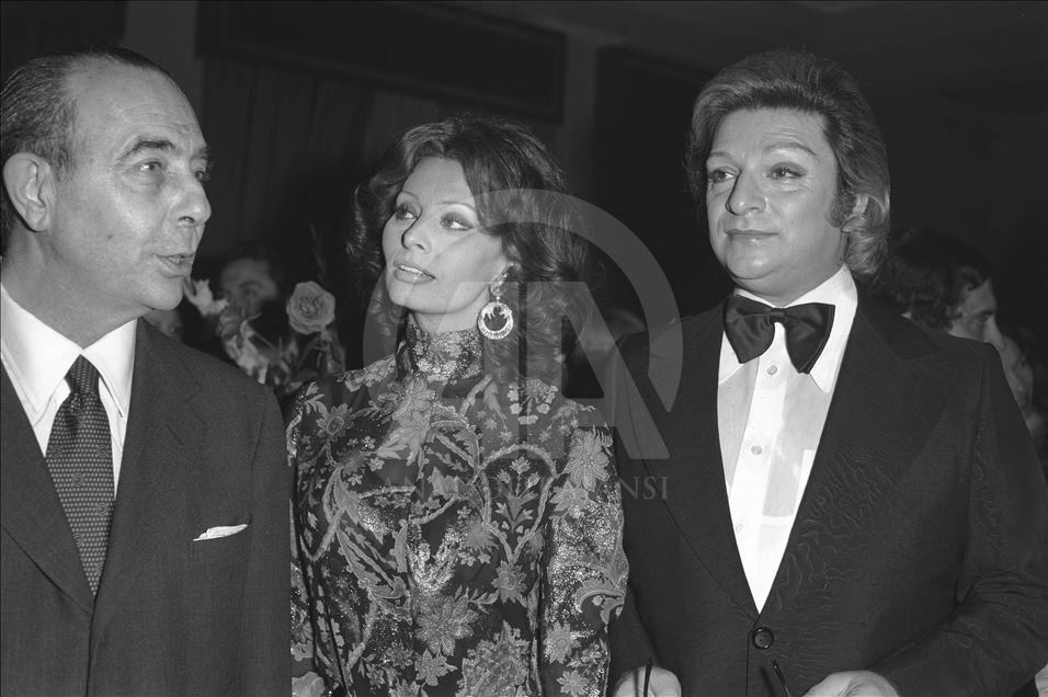 Türkiye'nin "Sanat Güneşi" olarak anılan sanatçı Zeki Müren, vefatının 23. yılında yad ediliyor. 26 Nisan 1974'de İtalyan sinema sanatçısı Sophia Loren (ortada) onuruna 26 Nisan 1974'te verilen resepsiyona sanatçı Zeki Müren (sağda) katıldı. (Arşiv)