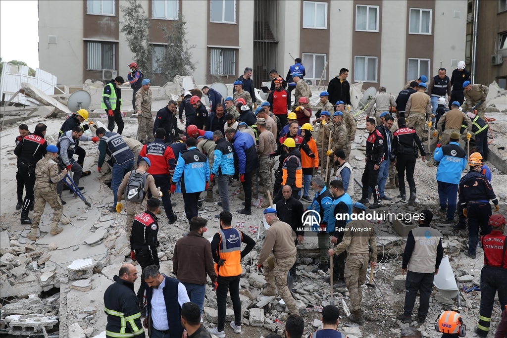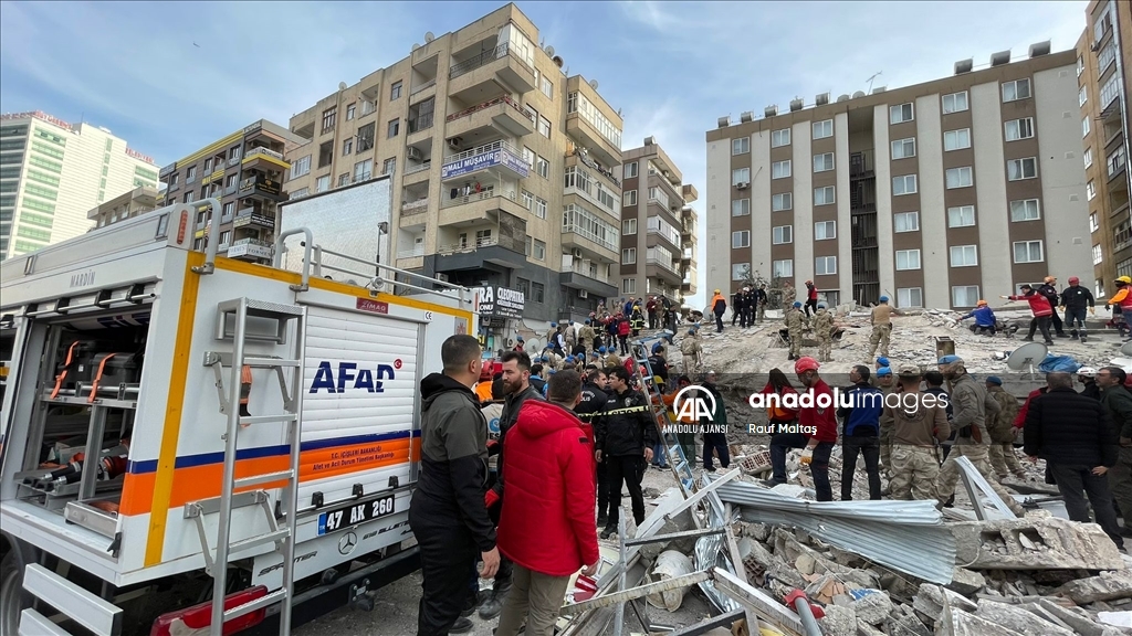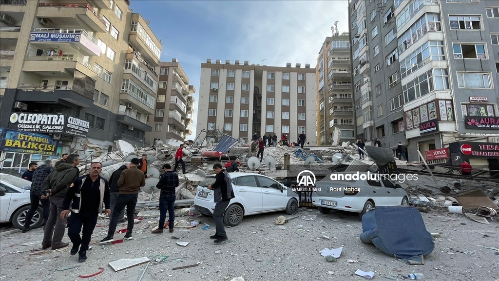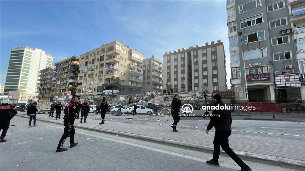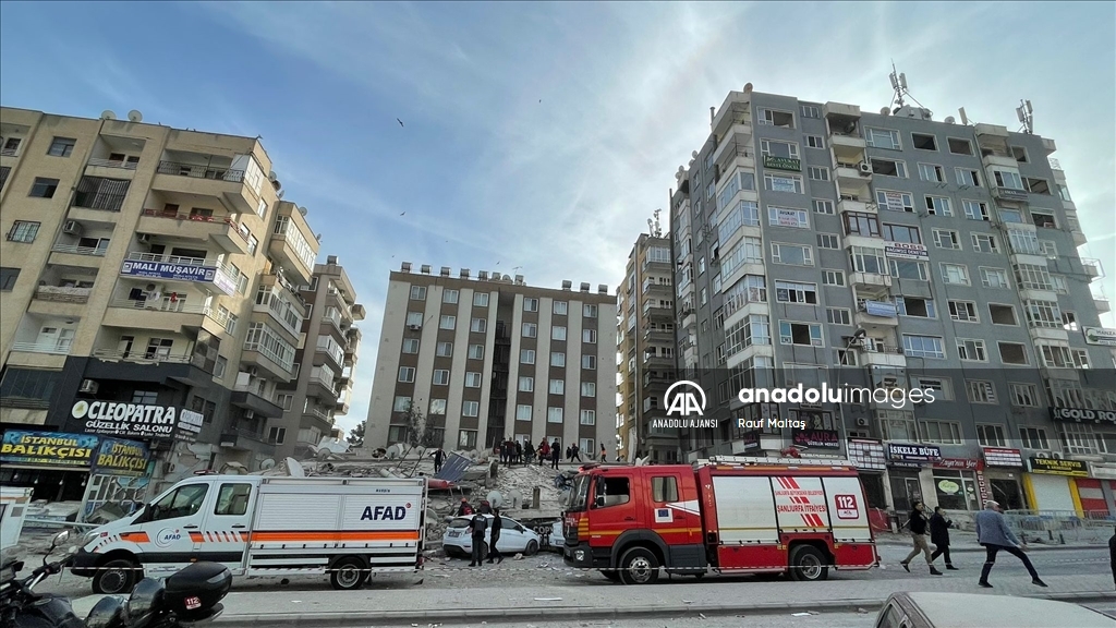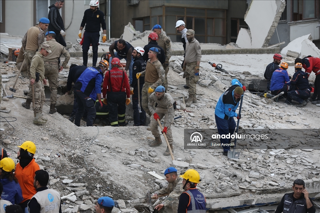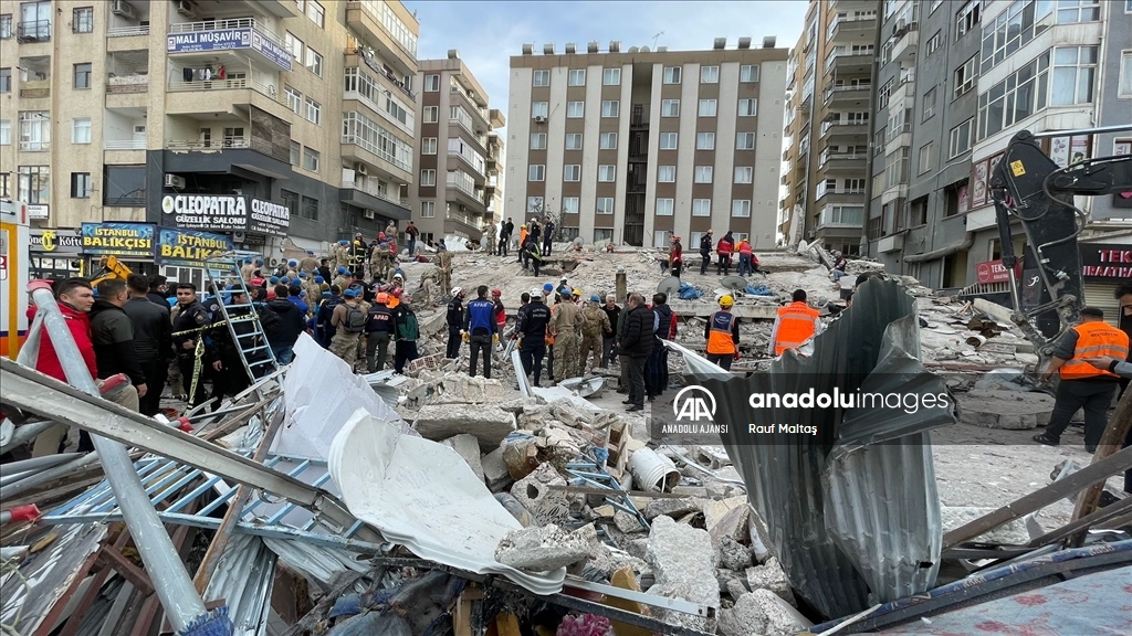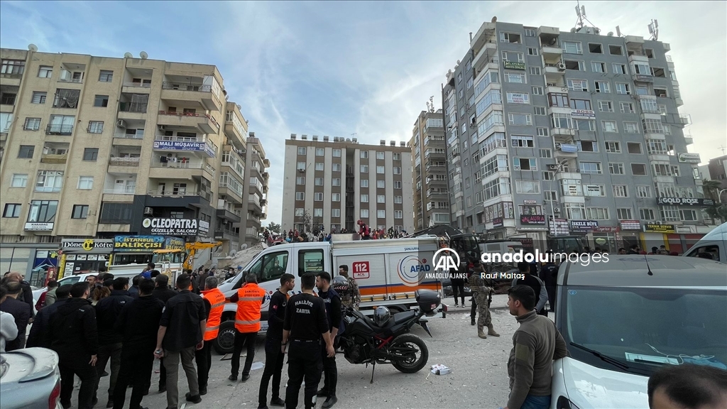 Kahramanmaraş merkezli 6 Şubat'ta meydana gelen depremlerden etkilenen kentte Haliliye ilçesindeki bir bina çöktü. Bölgeye AFAD, itfaiye, UMKE, sağlık ekipleri ile güvenlik güçleri sevk edildi. ( Eşber Ayaydın - Anadolu Ajansı )Eşber Ayaydın