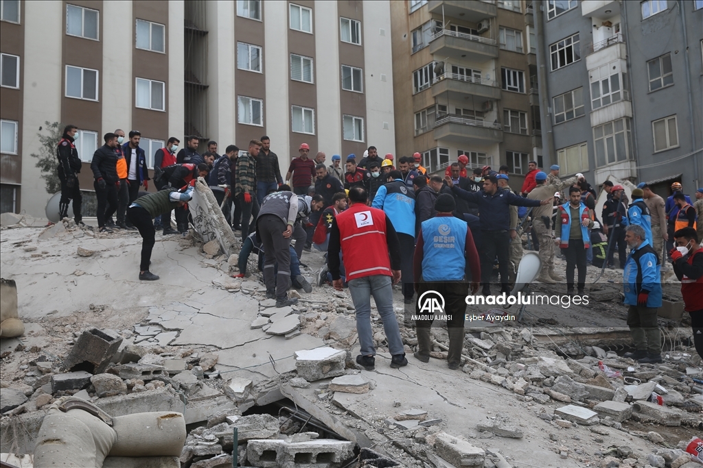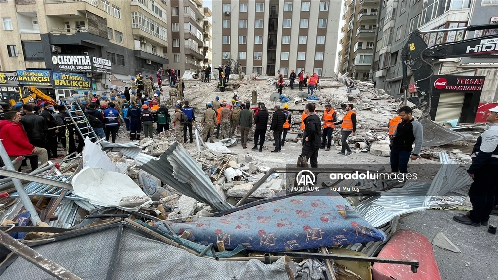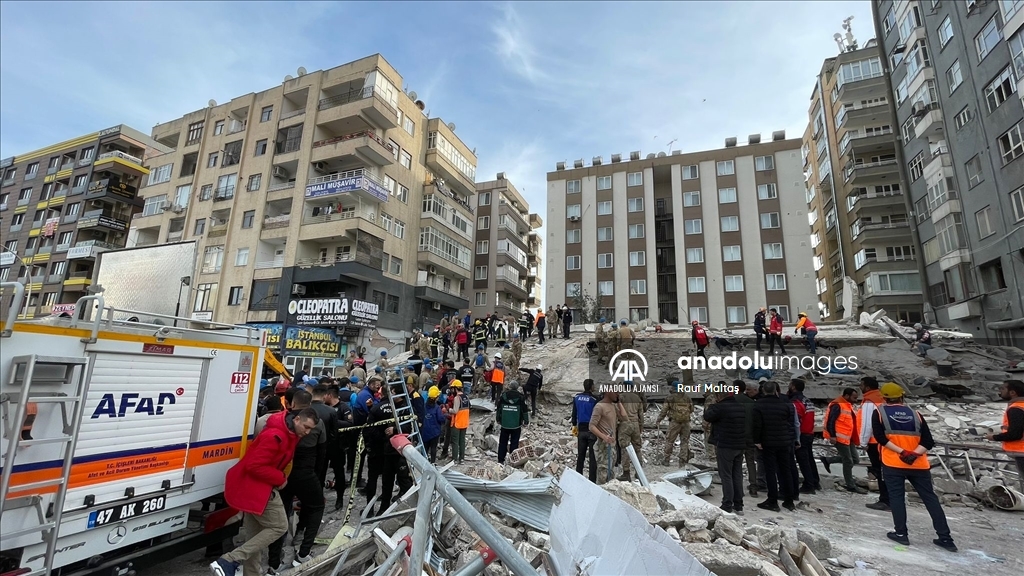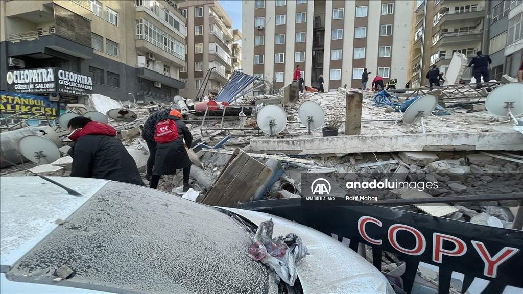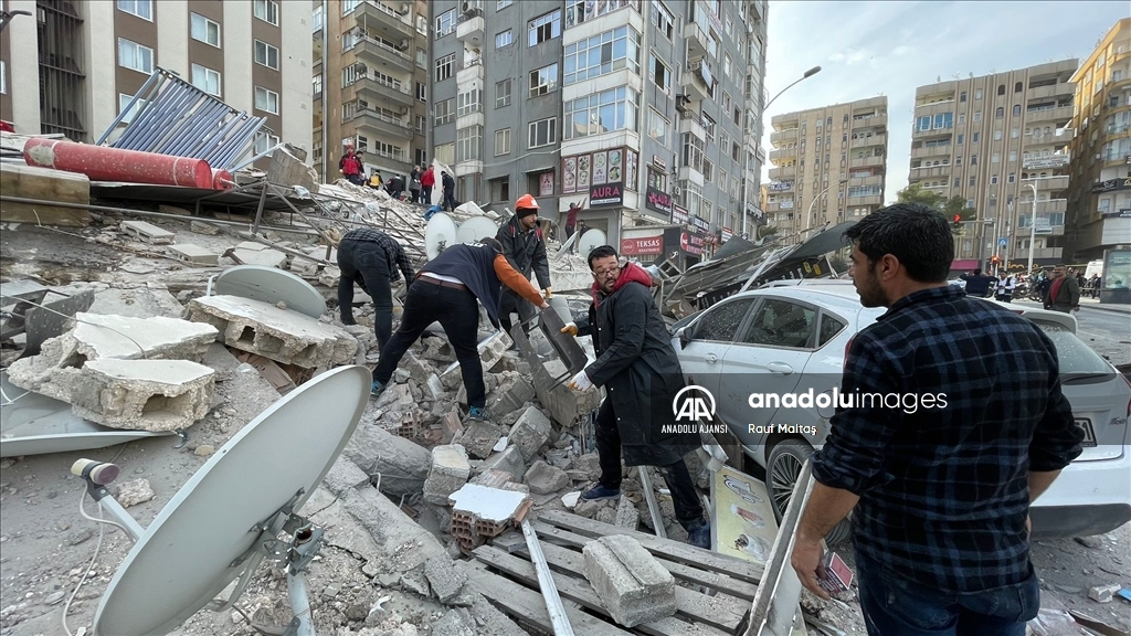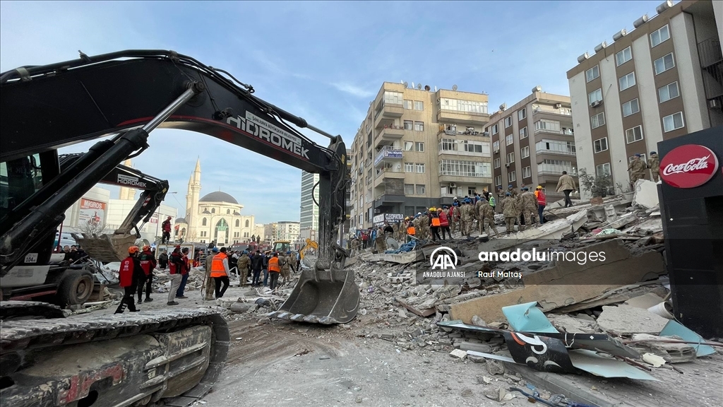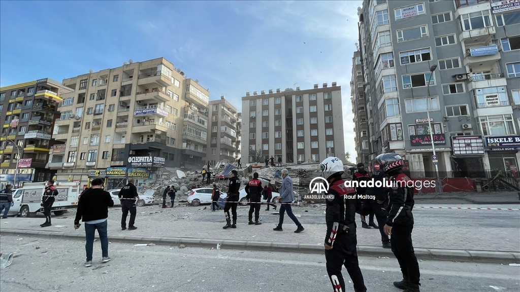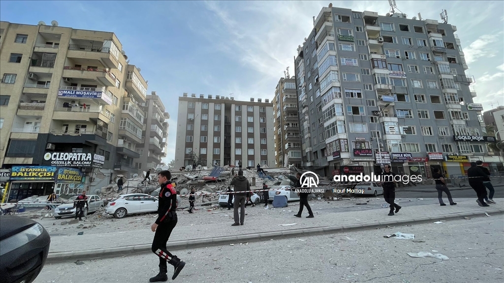 Kahramanmaraş merkezli 6 Şubat'ta meydana gelen depremlerden etkilenen kentte Haliliye ilçesindeki bir bina çöktü. Bölgeye AFAD, itfaiye, UMKE, sağlık ekipleri ile güvenlik güçleri sevk edildi. ( Eşber Ayaydın - Anadolu Ajansı )Eşber Ayaydın