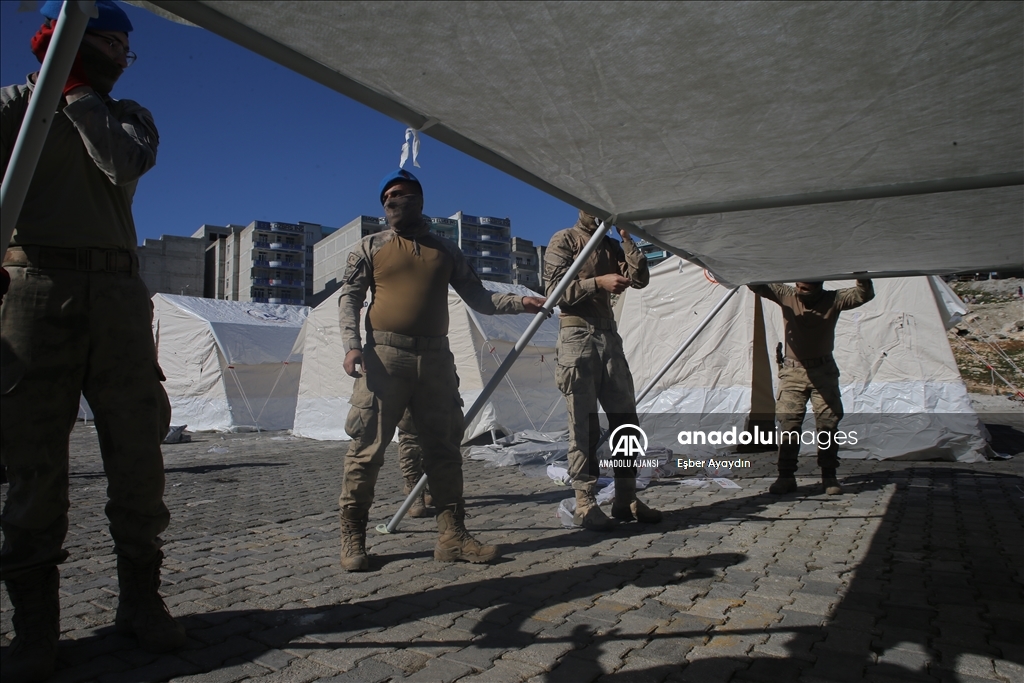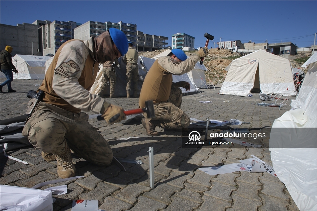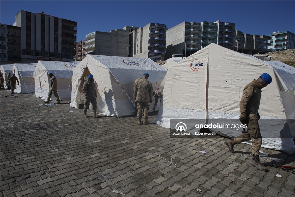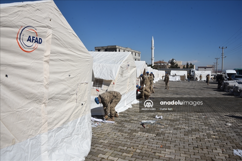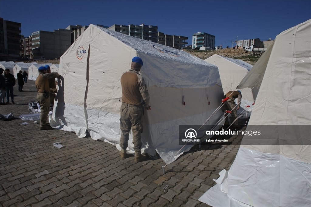 Şanlıurfa'da depremzedeler için çadır kurulumu sürüyor