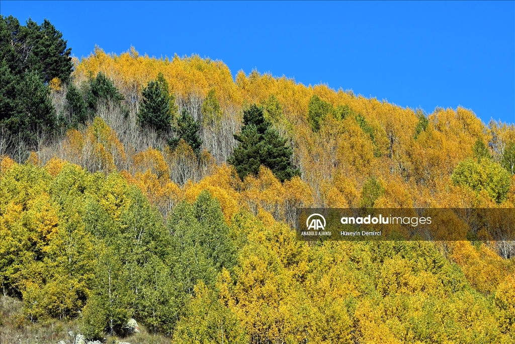 Türkiye'nin en yüksek yerleşim yerlerinden Kars'ın Sarıkamış ilçesinde sonbahar mevsimiyle doğa, farklı renklere büründü.