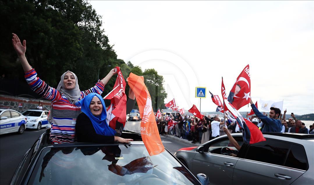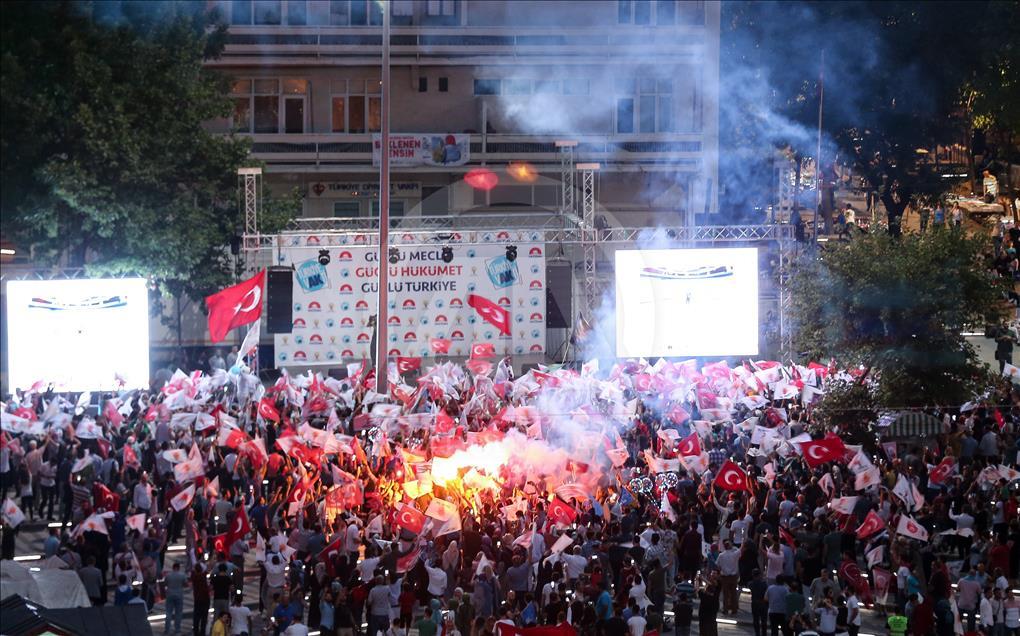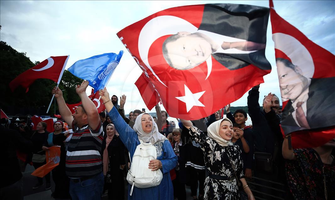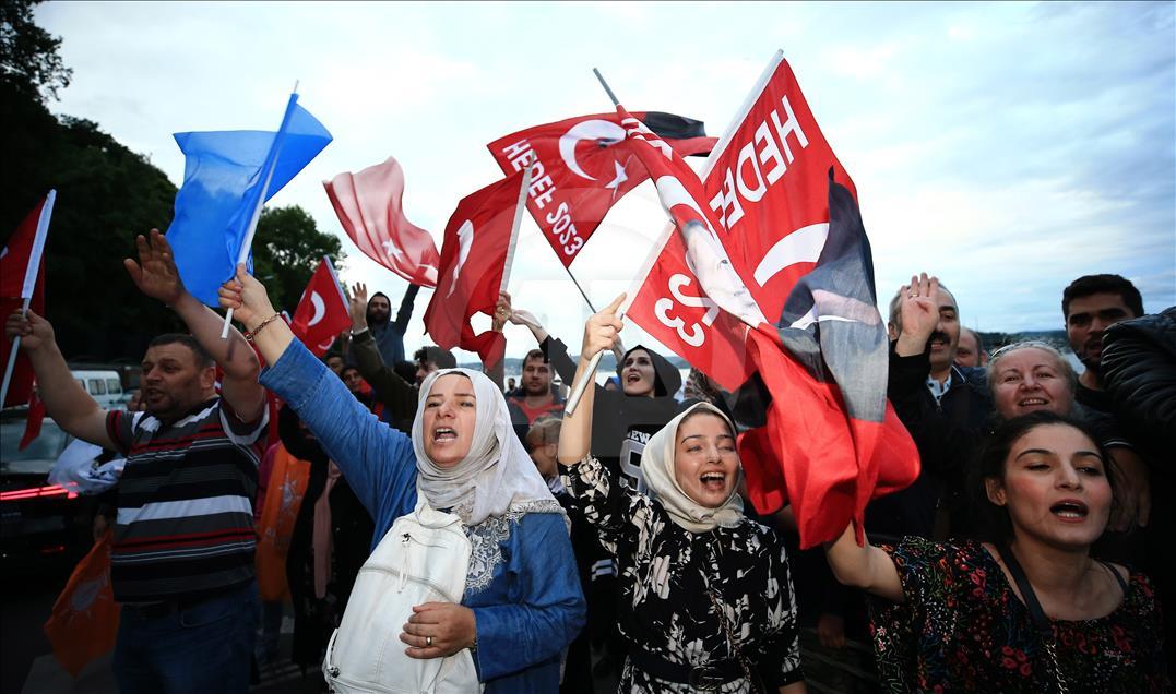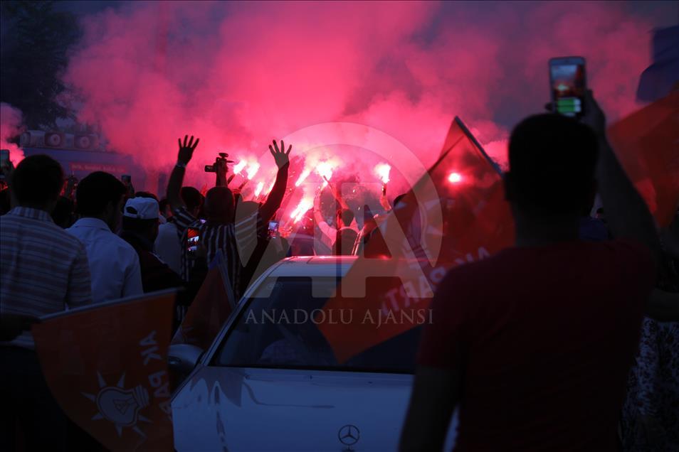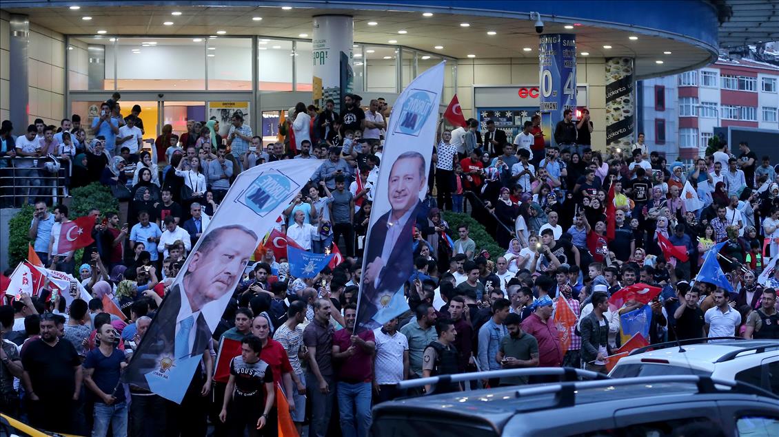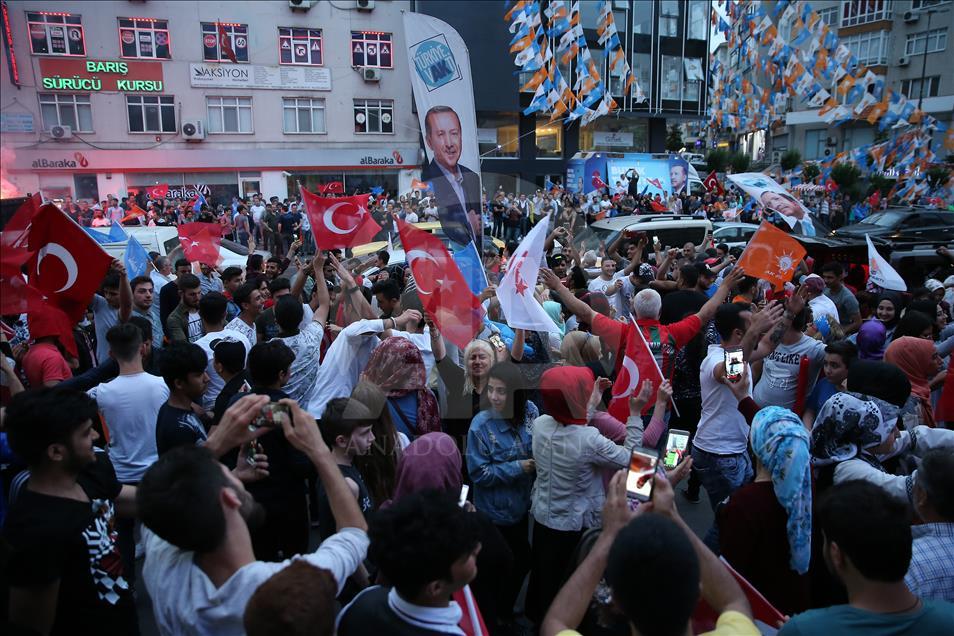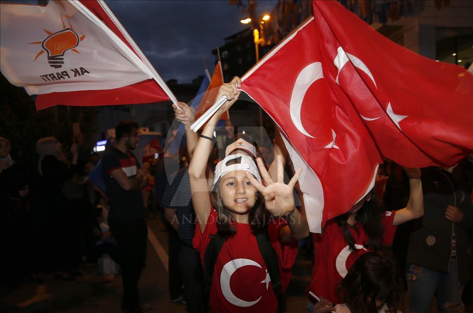 Cumhurbaşkanı ve 27. Dönem Milletvekilliği seçimi sonuçlarının açıklanmaya başlamasının ardından, vatandaşlar AK Parti İstanbul İl Başkanlığı önünde toplanarak sevinç gösterisinde bulundu. ( Erhan Elaldı - Anadolu Ajansı )Erhan Elaldı