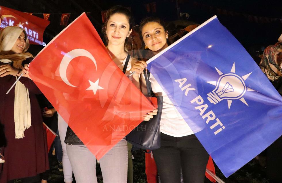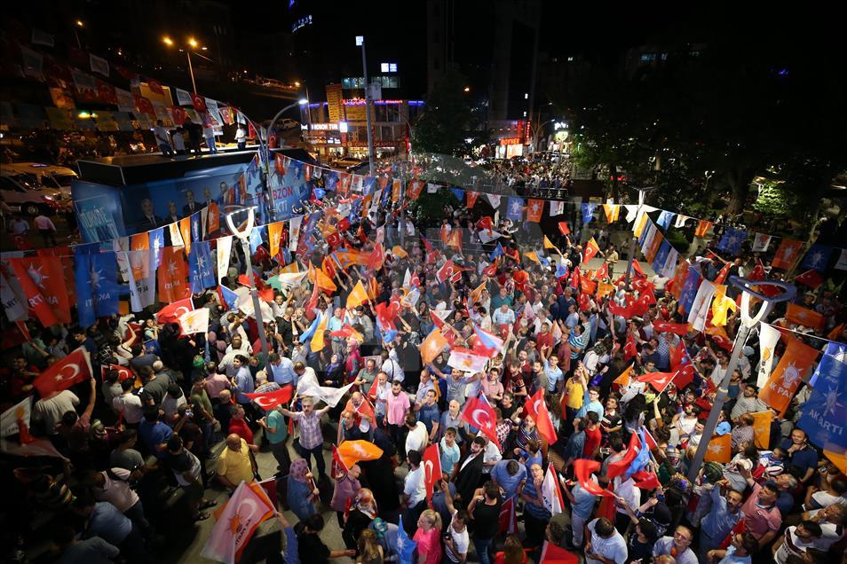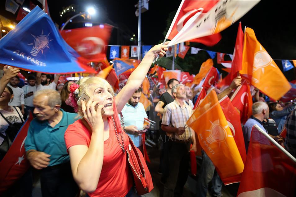 Cumhurbaşkanı ve 27. Dönem Milletvekilliği seçimi sonuçlarının açıklanmaya başlamasının ardından, vatandaşlar AK Parti Trabzon İl Başkanlığı önünde toplanarak sevinç gösterilerinde bulundu. ( Hakan Burak Altunöz - Anadolu Ajansı )Hakan Burak Altunöz