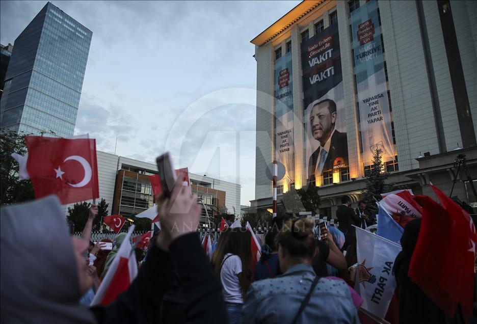 Cumhurbaşkanı ve 27. Dönem Milletvekilliği seçimi sonuçlarının açıklanmaya başlamasının ardından, vatandaşlar AK Parti Genel Merkezi önünde toplanmaya başladı. ( Erçin Top - Anadolu Ajansı )Erçin Top
