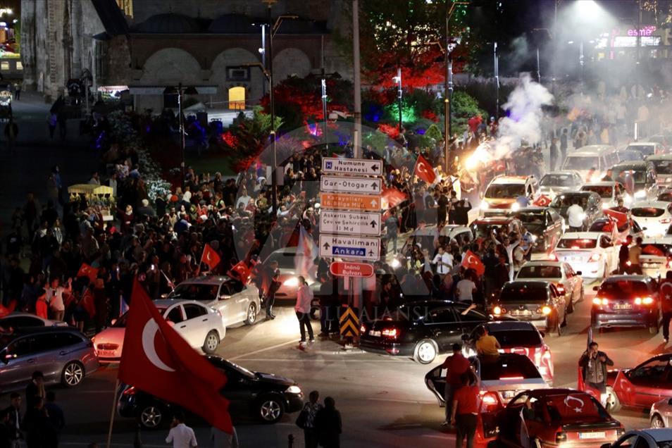 Cumhurbaşkanı ve 27. Dönem Milletvekilliği seçimi sonuçlarının açıklanmaya başlamasının ardından, vatandaşlar Güngören'de toplanarak sevinç gösterisinde bulundu. ( İsa Terli - Anadolu Ajansı )İsa Terli