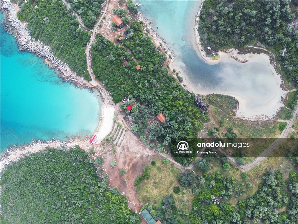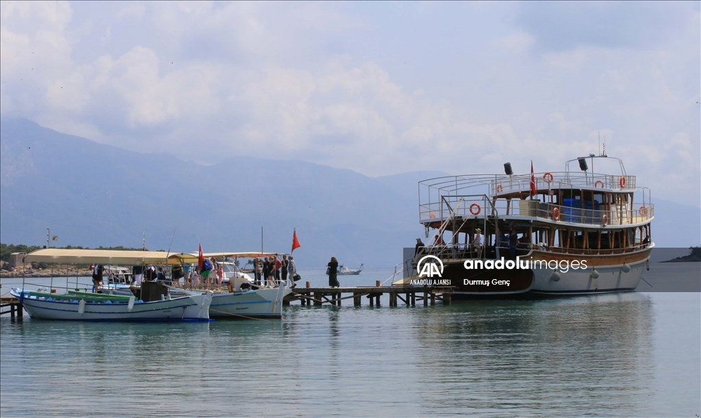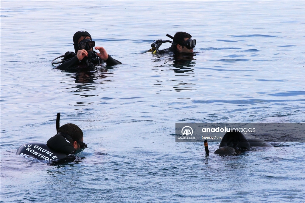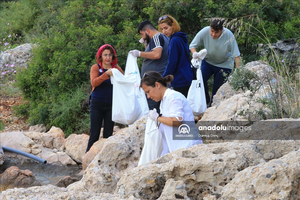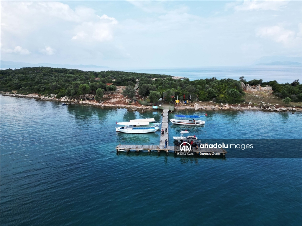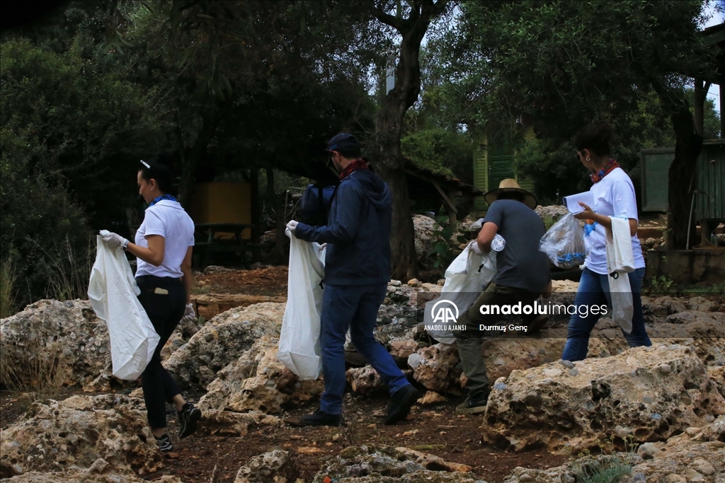 Koruma altında bulunan altın sarısı kumuyla ünlü Gökova Körfezi'ndeki Sedir Adası ile Kleopatra Plajı çevresinde ekipler tarafından kıyı ve deniz dibi temizliği gerçekleştirildi. ( Durmuş Genç - Anadolu Ajansı )Durmuş Genç