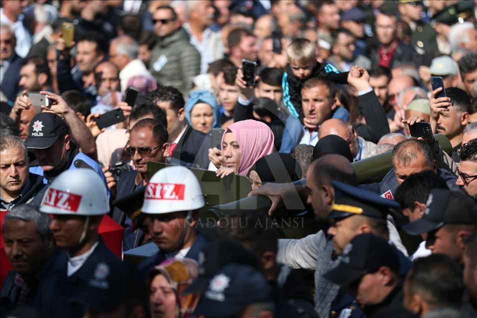 Ağrı'nın Doğubayazıt ilçesinde, İran sınırında devriye gezen zırhlı araca teröristlerce düzenlenen roketli saldırıda şehit olan İstihkam Er Zekeriya Altunok, memleketi Kayseri'de son yolculuğuna uğurlandı. Altunok için Kalem Kırdı Camisi'nde cenaze töreni düzenlendi. Törene şehidin eşi Vildan (sol 3), annesi Nurgul (solda), oğulları Ahmet Eren (sol 2) ile Gökdeniz Altunok da (sağda) katıldı. ( Sercan Küçükşahin - Anadolu Ajansı )Sercan Küçükşahin