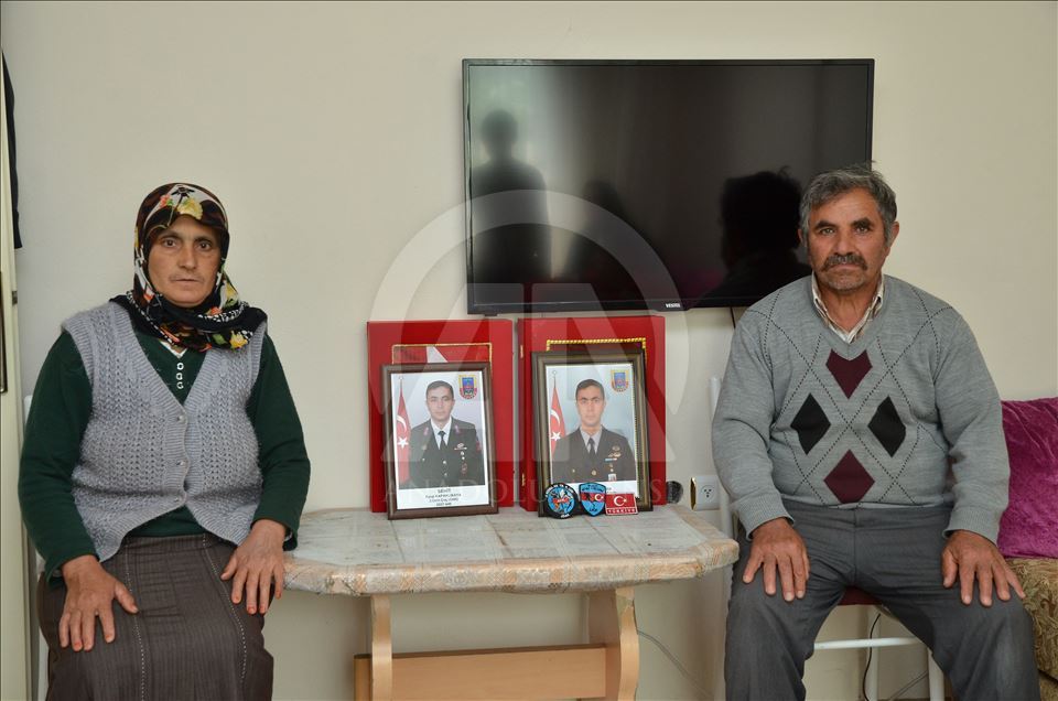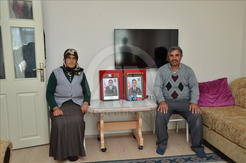 Bayburt ile Trabzon arasındaki Soğanlı Dağı'ndaki yol açma çalışmalarını takip ederken Derebaşı virajlarında bastığı kar kütlesinin kopması sonucu uçuruma düşen AA Bayburt muhabiri Abdulkadir Nişancı'yı arama çalışmaları sırasında akıntıya kapılarak şehit olan Uzman Çavuş Eyüp Kapaklıkaya'nın Çorum'daki evinde yas var. Şehit babası Şaban Kapaklıkaya (sağda) ve annesi Hatice Kapaklıkaya (solda), Çorum Valisi Mustafa Çifçi'nin kendilerine takdim ettiği Türk bayrağı ve şehide ait fotoğrafı evinin baş köşesinde saklıyor. ( Kemal Ceylan - Anadolu Ajansı )Kemal Ceylan