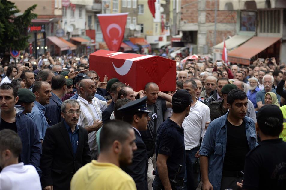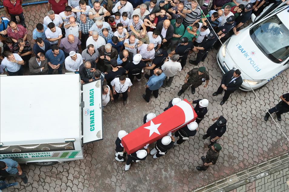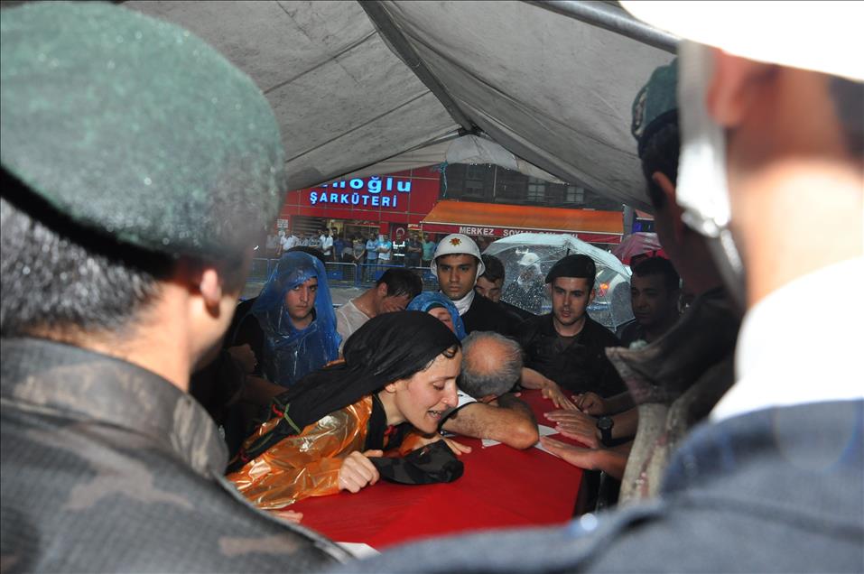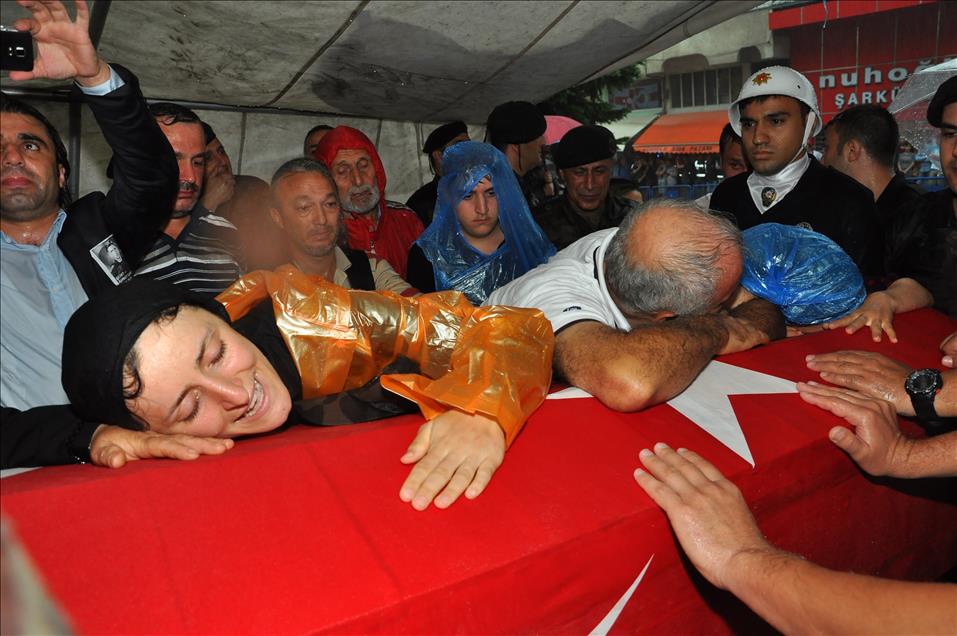 Hakkari'nin Şemdinli ilçesindeki çatışmada şehit olan komiser Ahmet Çamur'un cenazesi Cumhurbaşkanı Recep Tayyip Erdoğan'ın katıldığı törenle memleketi Trabzon'da son yolculuğuna uğurlandı. (Hakan Burak Altunöz - Anadolu Ajansı)Hakan Burak Altunöz