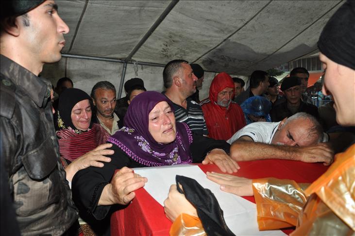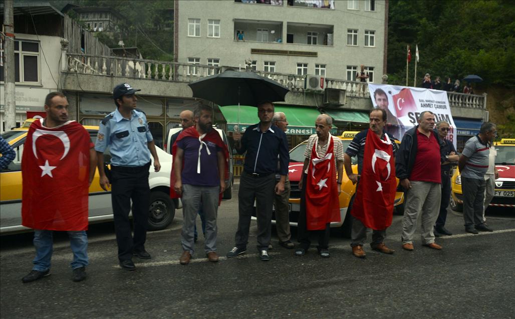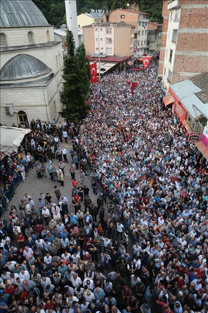 Hakkari'nin Şemdinli ilçesindeki çatışmada şehit olan komiser Ahmet Çamur'un cenazesi Cumhurbaşkanı Recep Tayyip Erdoğan'ın katıldığı törenle memleketi Trabzon'da son yolculuğuna uğurlandı (Meltem Yılmaz - Anadolu Ajansı)Meltem Yılmaz