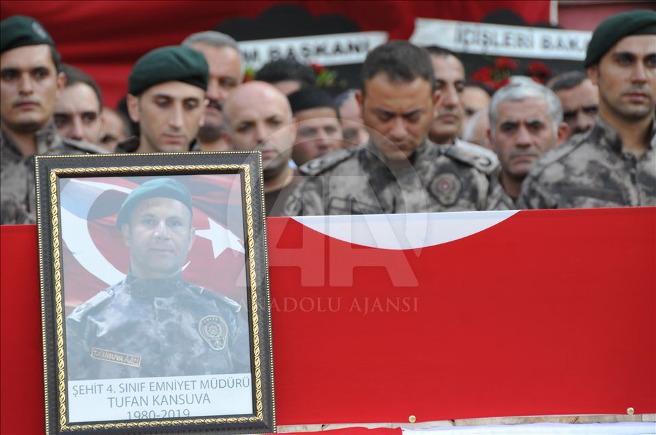 Mardin'in Ömerli ilçesinde PKK'lı teröristlerin saldırısı sonucu şehit düşen Mardin Emniyet Müdürlüğü Özel Harekat Şube Müdürü Tufan Kansuva için İl Emniyet Müdürlüğü Özel Harekat Şube Müdürlüğünde tören düzenlendi. ( Muhammed Furkan Güneş - Anadolu Ajansı )Muhammed Furkan Güneş