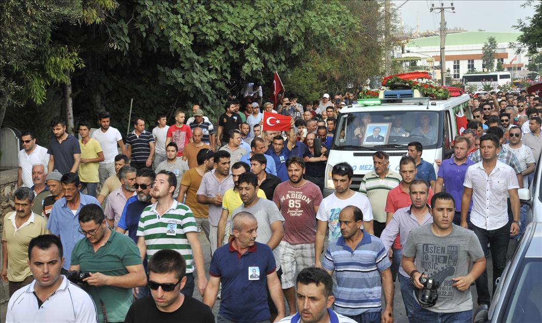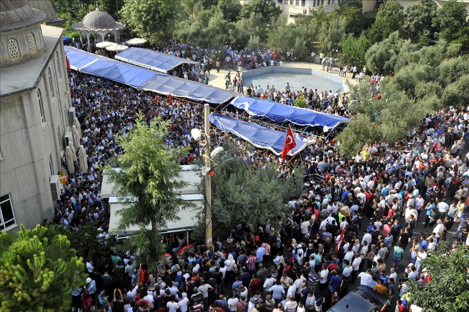 Mardin'in Midyat ilçesinde teröristlerin saldırısında şehit düşen polis memuru Abdullah Ümit Sercan, memleketi Alanya'da düzenlenen törenin ardından toprağa verildi. (Sinan Özmüş - Anadolu Ajansı)Sinan Özmüş