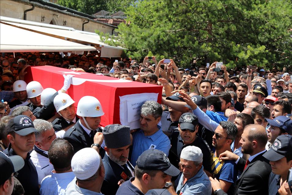 Şırnak'ın Silopi ilçesindeki saldırıda ağır yaralanan ve tedavi gördüğü hastanede şehit olan polis memuru Muhammed Onur Demir'in cenazesi, memleketi Sivas'ta toprağa verildi. Törene TBMM Başkanı İsmet Yılmaz da katıldı (Halife Yalçınkaya - Anadolu Ajansı)Halife Yalçınkaya