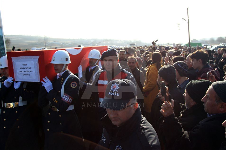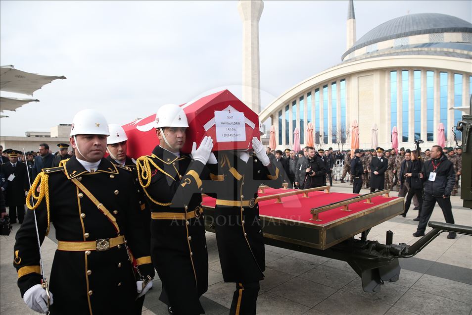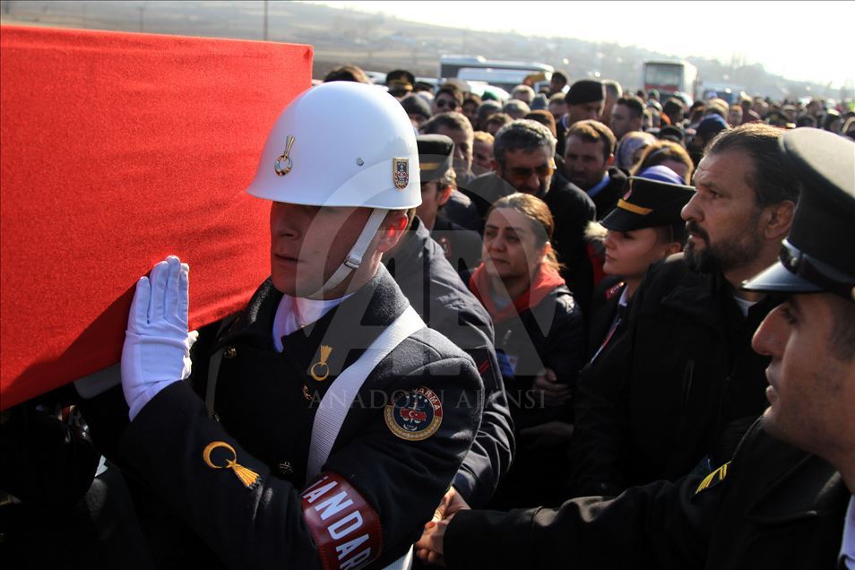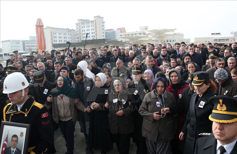 Şırnak'ın İdil ilçesinde, PKK'lı teröristlerce tuzaklanan el yapımı patlayıcıya müdahale sırasında meydana gelen patlamada şehit olan Jandarma Astsubay Üstçavuş Esma Çevik, Jandarma Uzman Çavuş Kemal Sayar ve Jandarma Astsubay Çavuş Halil Ulaş Yıldırım son yolculuklarına uğurlanıyor.