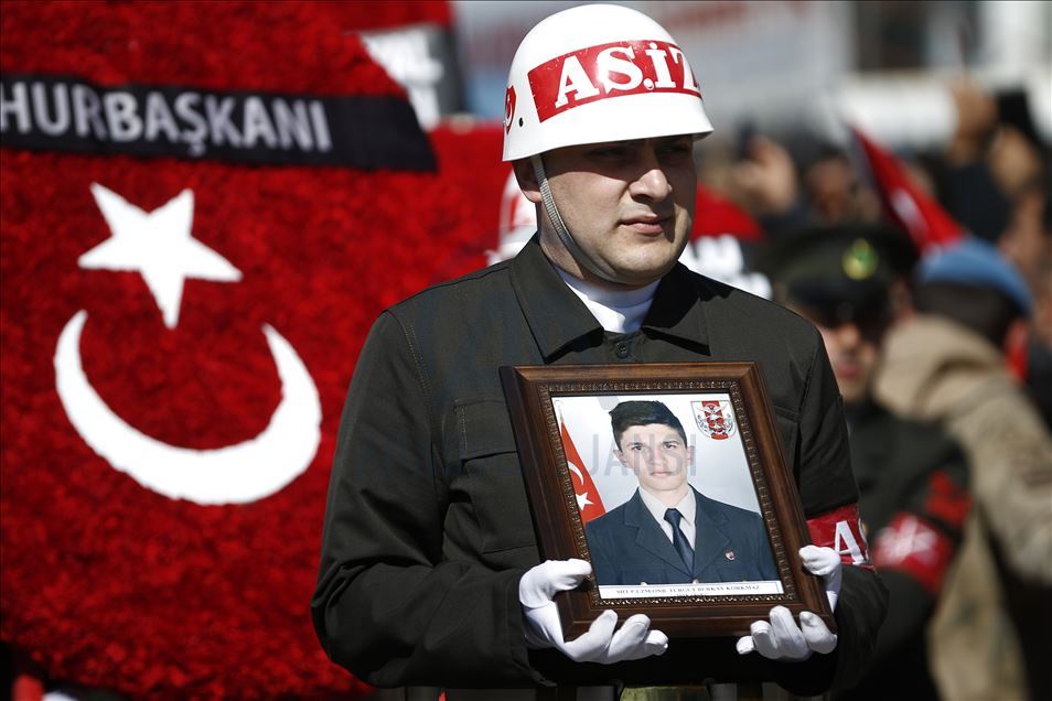 Suriye'nin İdlib kentinde rejim unsurlarının hava saldırısı sonucu şehit olan 29 yaşındaki Teğmen Mustafa Bayrakdar için memleketi Hatay'ın Antakya ilçesinde tören düzenlendi. ( Emin Sansar - Anadolu Ajansı )Emin Sansar