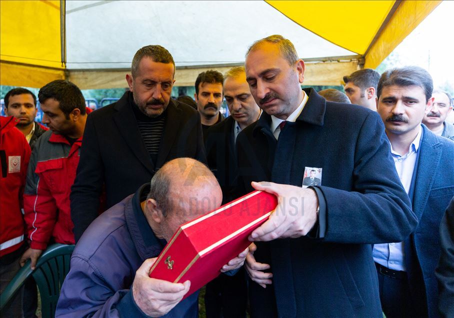 İdlib'de rejim unsurlarının saldırısı sonucu şehit olan Piyade Uzman Onbaşı Veysel Günay, Gaziantep'in İslahiye ilçesinde toprağa verildi. Bakan Gül, şehidin babası Genco Günay'ı teselli etti.