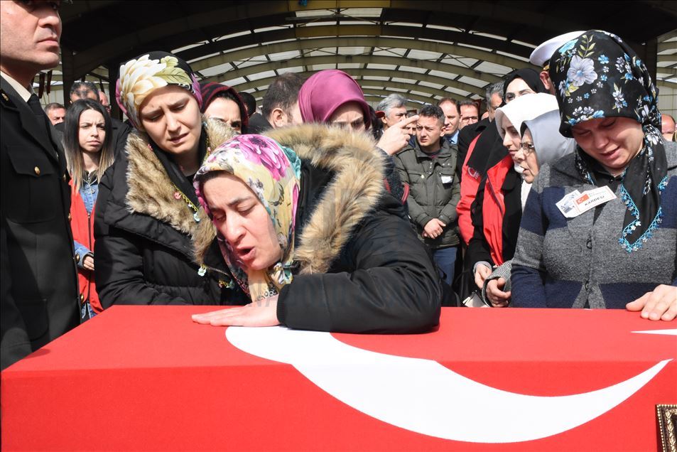 Suriye'nin İdlib kentinde rejim unsurlarının hava saldırısı sonucu şehit olan Piyade Uzman Çavuş Tolga Can Yılmaz'ın cenazesi, memleketi Zonguldak'ın Çaycuma ilçesinde toprağa verildi. Yılmaz'ın yakınlarının gözyaşlarına hakim olamadığı görüldü. ( Ferdi Akıllı - Anadolu Ajansı )Ferdi Akıllı