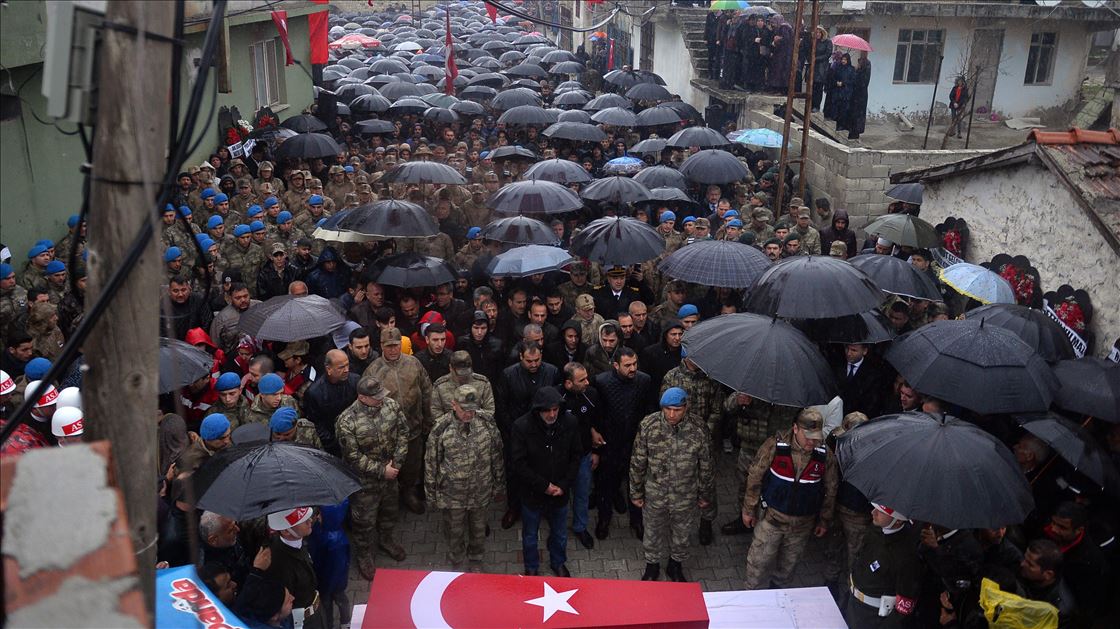 Suriye'nin İdlib kentinde rejim unsurlarının hava saldırısı sonucu şehit olan Piyade Uzman Onbaşı Batuhan Tank'ın cenazesi, memleketi Osmaniye'nin Kadirli ilçesinde toprağa verildi. ( Menderes Özat - Anadolu Ajansı )Menderes Özat