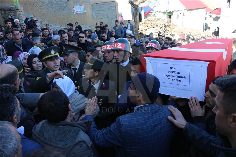Irak'ın kuzeyindeki Kani Rash bölgesinde Türk Silahlı Kuvvetleri (TSK) unsurlarına yönelik saldırıda şehit olan Piyade Sözleşmeli Er Hayrettin Dindar, Siirt'in Şirvan ilçesinde son yolculuğuna uğurlandı. ( Fecri Barlık - Anadolu Ajansı )Fecri Barlık