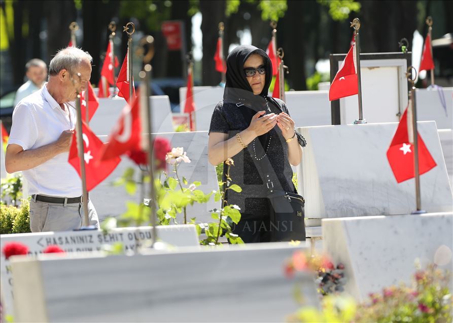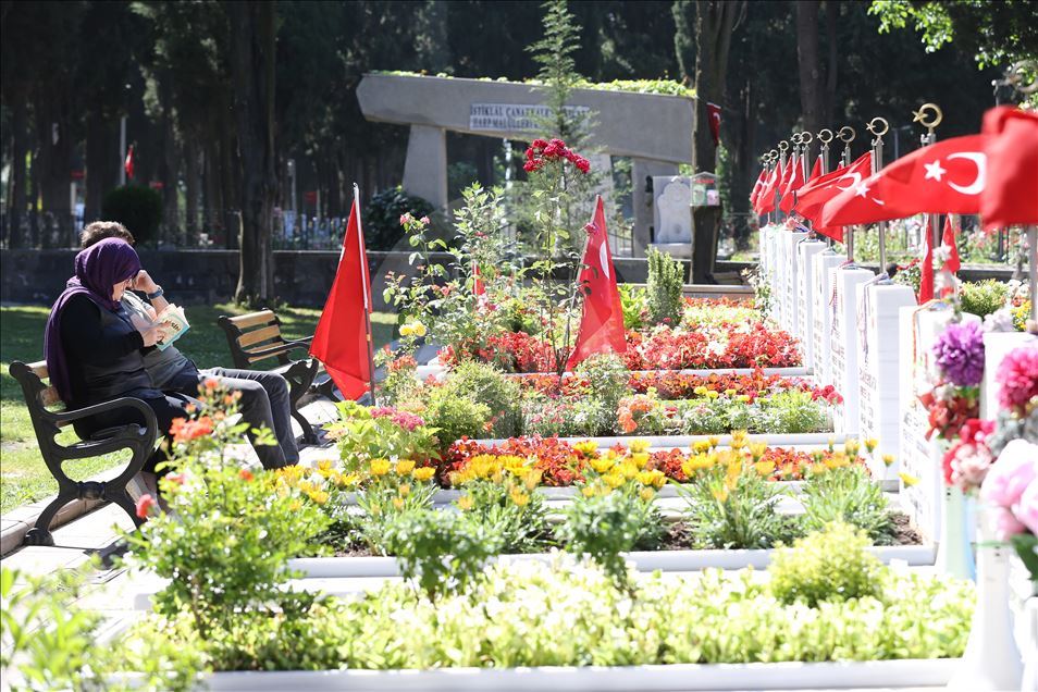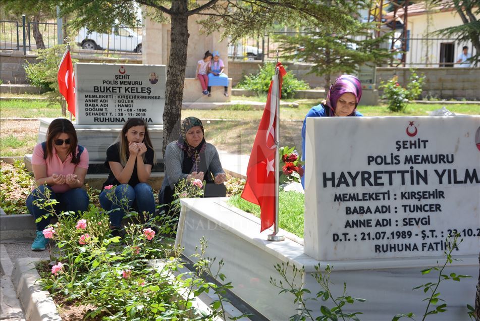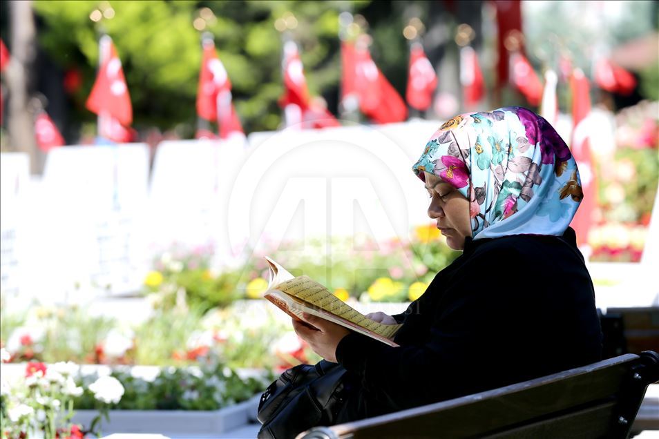 Şehit aileleri, Ramazan Bayramı arifesinde Şehitliklere gelerek, yakınlarının kabirlerini ziyaret etti. Şehit yakınları, mezarları temizleyerek, Kur'an-ı Kerim okudu, dua etti.