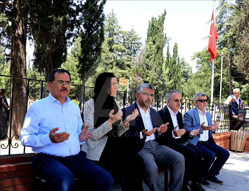 AK Parti Genel Başkan Yardımcısı Çiğdem Karaaslan, şehitlik ziyaretinde bulundu. Ziyarete Büyükşehir Belediye Başkanı Mustafa Demir (sol 1) ve AK Parti İl Başkanı Ersan Aksu (sol 3) da katıldı. ( Veysel Altun - Anadolu Ajansı )Veysel Altun