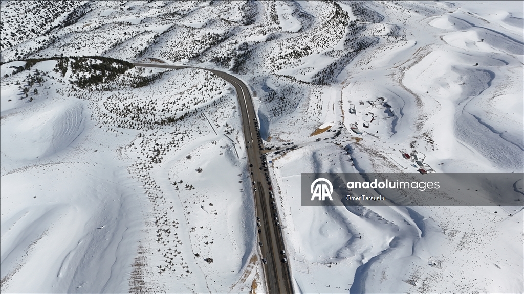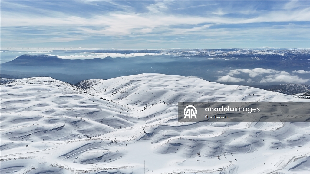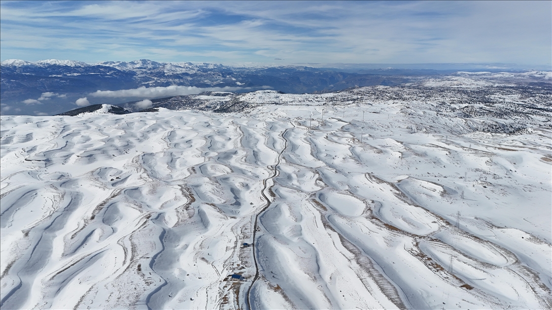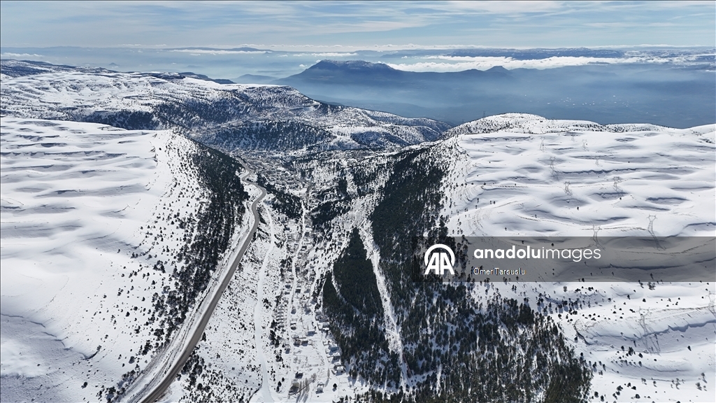 Sertavul Geçidi'nde kar manzarası havadan görüntülendi