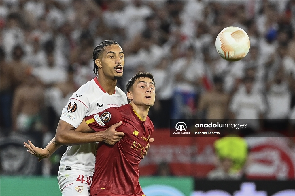 Sevilla ile Roma takımları, UEFA Avrupa Ligi final maçında Macaristan'ın başkenti Budapeşte'deki Puskas Arena'da karşılaştı. Bir pozisyonda, Sevilla takımının oyuncusu Loic Bade (solda) rakibi Paulo Dybala (sağda) ile mücadele etti. ( isabella Bonotto - Anadolu Ajansı )isabella Bonotto