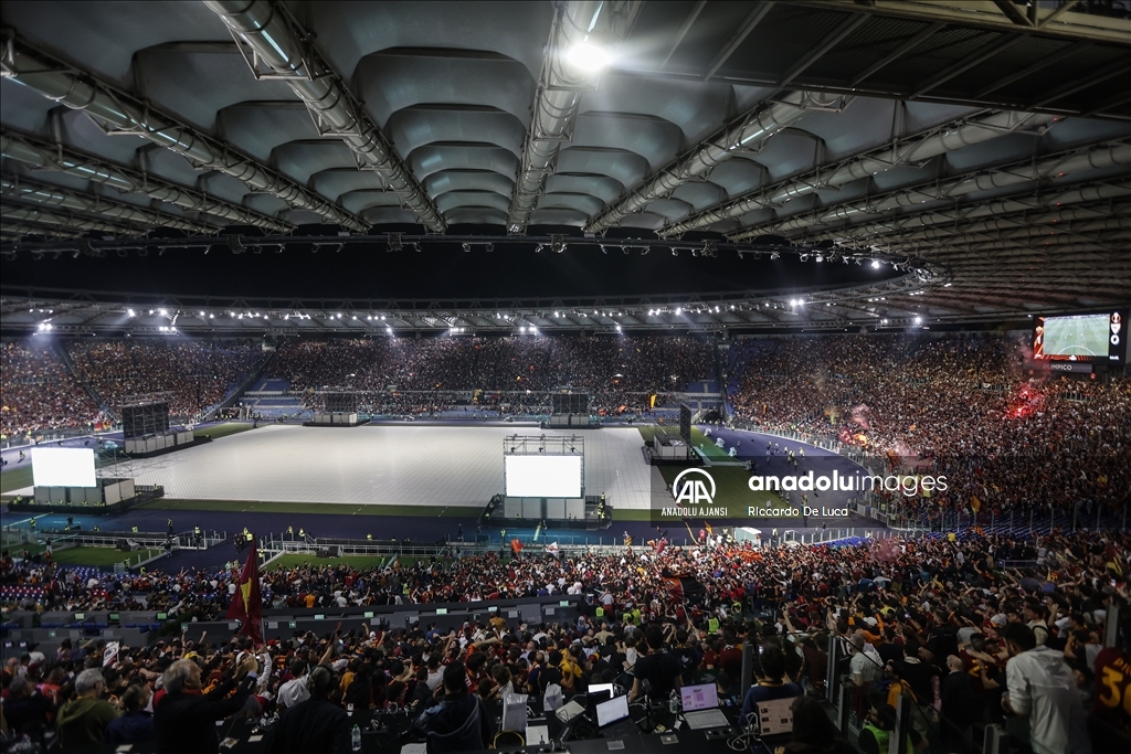 UEFA Avrupa Ligi Finali'nde Sevilla ile Roma, Macaristan'daki Puskas Arena'da karşı karşıya gelirken, Roma kulübü, Roma Olimpiyat Stadı'nda taraftarlarının maçı topluca izlemesi için dev ekranlar kurdu. 70 bini aşkın Romalı taraftar, maçı ekranlardan takip etti. ( Riccardo De Luca - Anadolu Ajansı )Riccardo De Luca