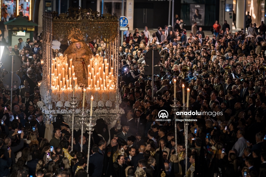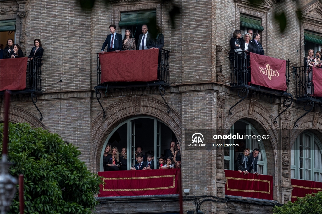 Kutsal Hafta kapsamında Seville’in tarihi kent merkezinde düzenlenen geçit törenlerinde, kardeşlik grupları Hazreti İsa ve Meryem Ana’nın kutsal tasvirlerini taşıdı.