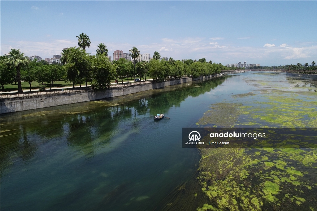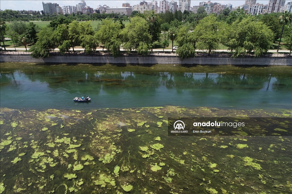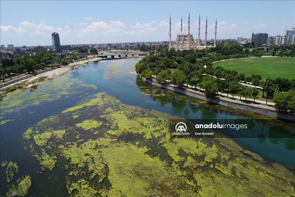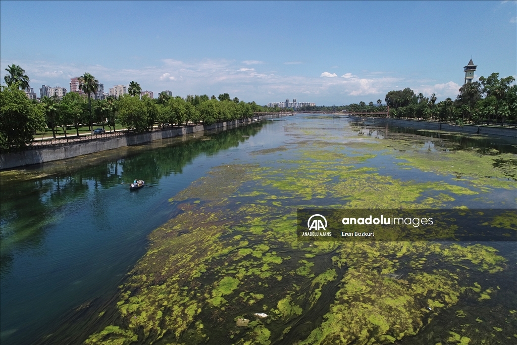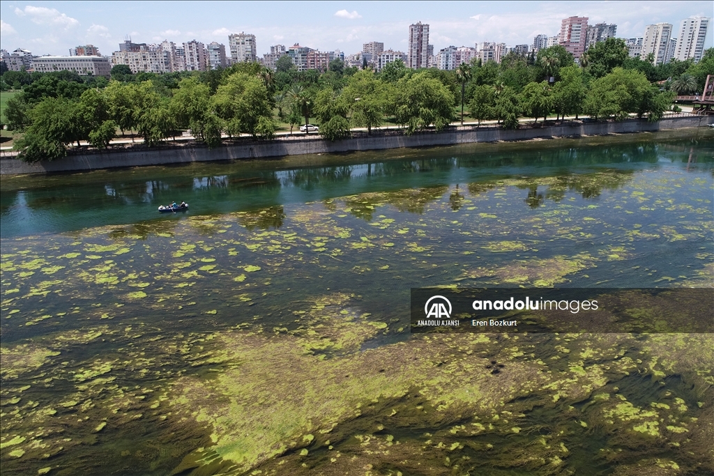 Adana'da, baraj kapaklarındaki çalışma nedeniyle suyu kesilen Seyhan Nehri'nde artan yosunlar, 5 Temmuz'dan itibaren temizlenmeye başlanacak. Suyun kesilmesinin ardından yosunların nehrin yüzeyine yayıldığı görüldü.
