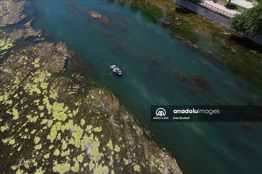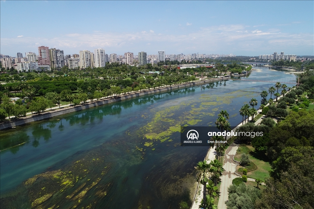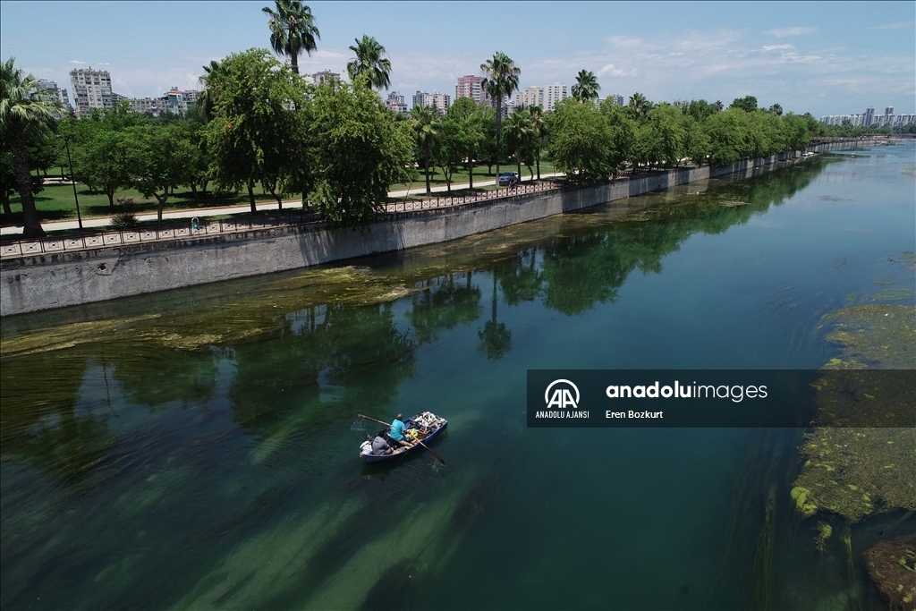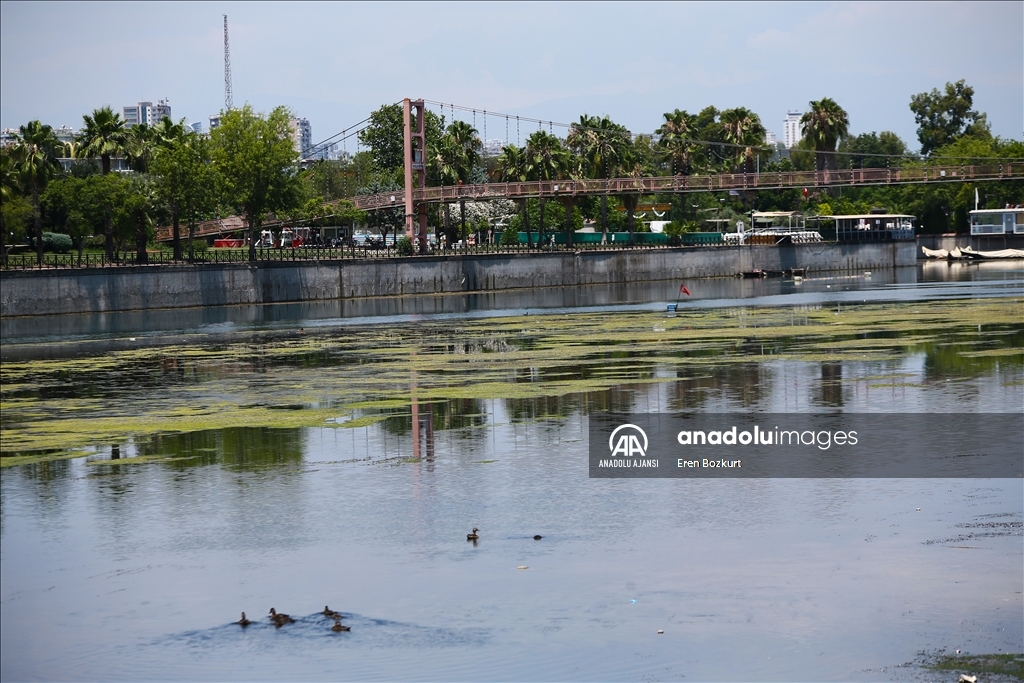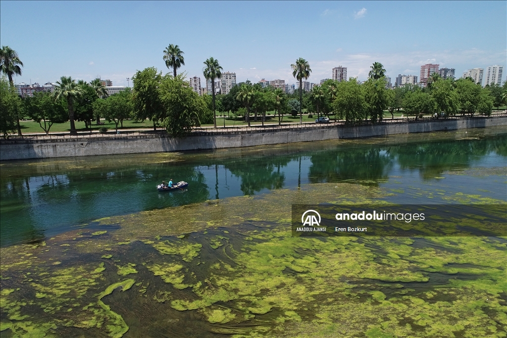 Adana'da, baraj kapaklarındaki çalışma nedeniyle suyu kesilen Seyhan Nehri'nde artan yosunlar, 5 Temmuz'dan itibaren temizlenmeye başlanacak. Suyun kesilmesinin ardından yosunların nehrin yüzeyine yayıldığı görüldü.