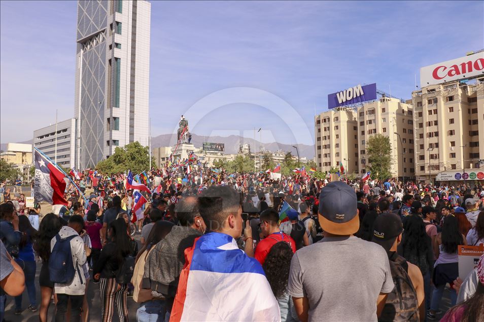 Geçen haftadan bu yana yağma ve yakma olaylarına neden olan şiddetli protestoların yaşandığı Şili'de, Devlet Başkanı Sebastian Pinera'nın, kabinesini değiştirmek üzere bütün bakanların istifasını istemesi üzerine gösterilere katılım azaldı. Başkent Santiago'da göstericilerin başlıca toplanma yeri olan İtalya Meydanı'nda düzenlenen gösterilere az kişi katıldı. ( Muhammed Emin Canik - Anadolu Ajansı )Muhammed Emin Canik