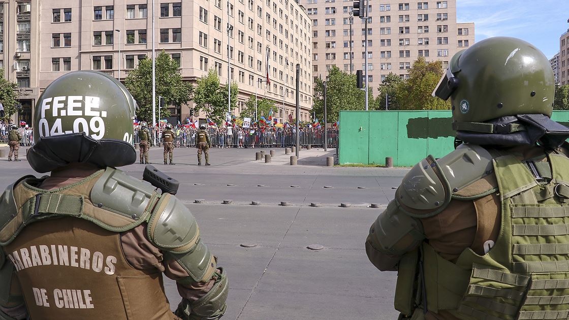 Geçen haftadan bu yana yağma ve yakma olaylarına neden olan şiddetli protestoların yaşandığı Şili'de, Devlet Başkanı Sebastian Pinera'nın, kabinesini değiştirmek üzere bütün bakanların istifasını istemesi üzerine gösterilere katılım azaldı. Bazı göstericiler öğlen saatlerinde Devlet Başkanlığı Sarayı La Moneda yakınında toplandı. Şili polisi, La Moneda etrafında güvenlik önlemleri aldı. ( Muhammed Emin Canik - Anadolu Ajansı )Muhammed Emin Canik