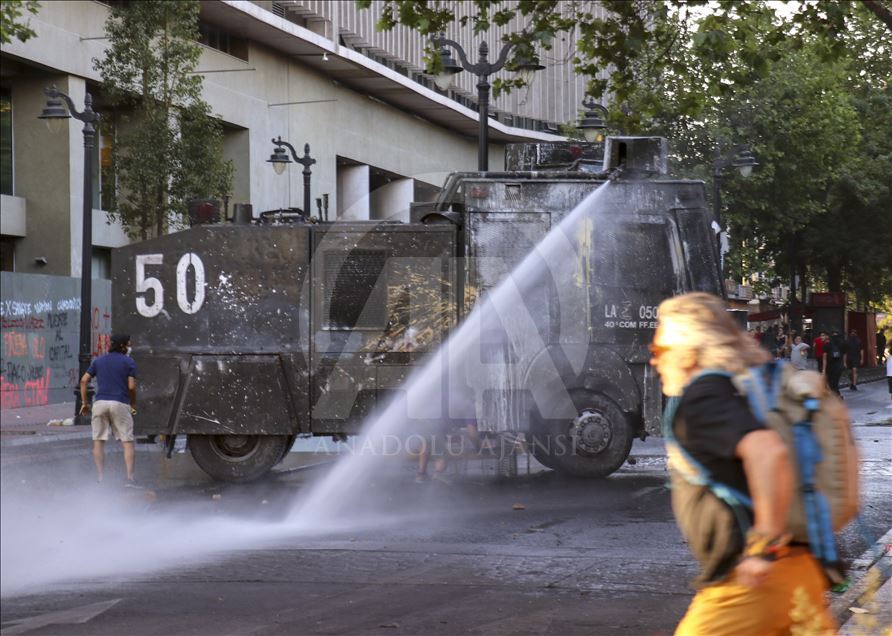 Şili'de metro ücretine yapılan zammın ardından başlayan ve geçen hafta şiddetlenerek 18 kişinin ölümüne neden protestolar sürüyor. Protestoda, bazı göstericiler güvenlik güçlerine yerden söktükleri kaldırım taşlarını atarken, polis de göz yaşartıcı gaz ve biber gazı ile göstericilere müdahale etti.