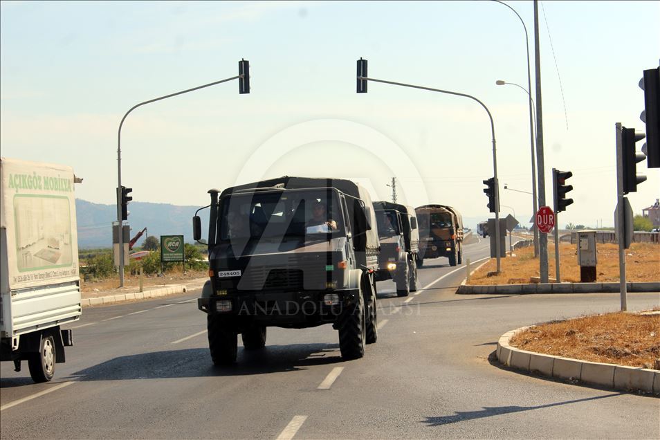 Türk Silahlı Kuvvetleri (TSK) tarafından Suriye sınırındaki askeri birliklere komando takviyesi sürüyor. Çeşitli bölgelerden Hatay'a gelen çok sayıda komando, Kırıkhan ve Hassa ilçelerinden geçerek Gaziantep istikametine doğru hareket etti. Komandoların sınır birliklerine takviye amaçlı gönderildiği öğrenildi. ( Hüseyin Yıldız - Anadolu Ajansı )Hüseyin Yıldız