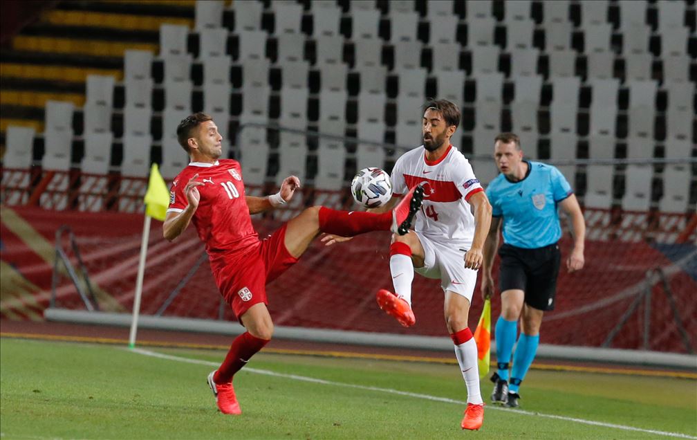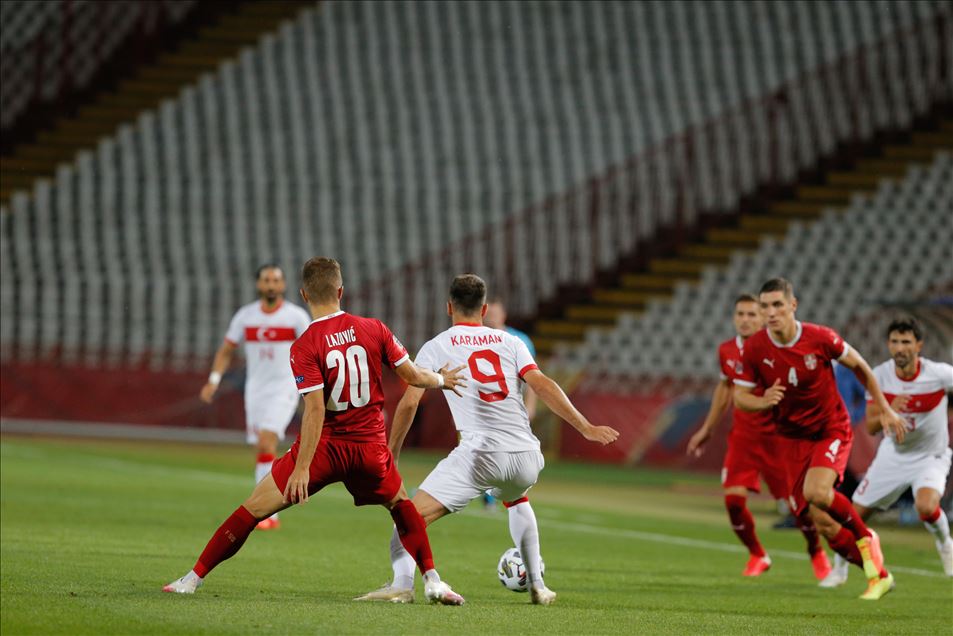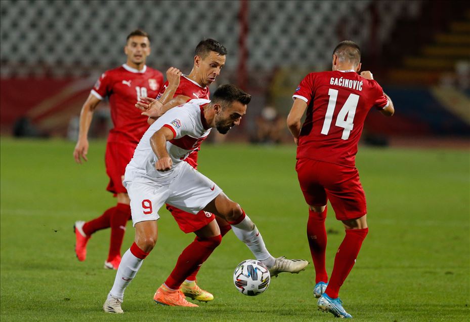 A Milli Futbol Takımı, UEFA Uluslar B Ligi, 3. Grup ikinci maçında Belgrad’ın Rajko Mitic Stadı’nda Sırbistan ile karşılaştı. Bir pozisyonda milli oyuncu Kenan Karaman (9), Sırbistan takımı futbolcusu Darko Lazovic (20) ile mücadele etti.