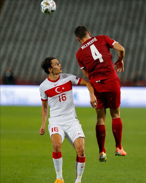 A Milli Futbol Takımı, UEFA Uluslar B Ligi, 3. Grup ikinci maçında Belgrad’ın Rajko Mitic Stadı’nda Sırbistan ile karşılaştı. Bir pozisyonda milli oyuncu Enes Ünal (16) Sırbistan takımı futbolcusu Nikola Milenkovic (4) ile mücadele etti.