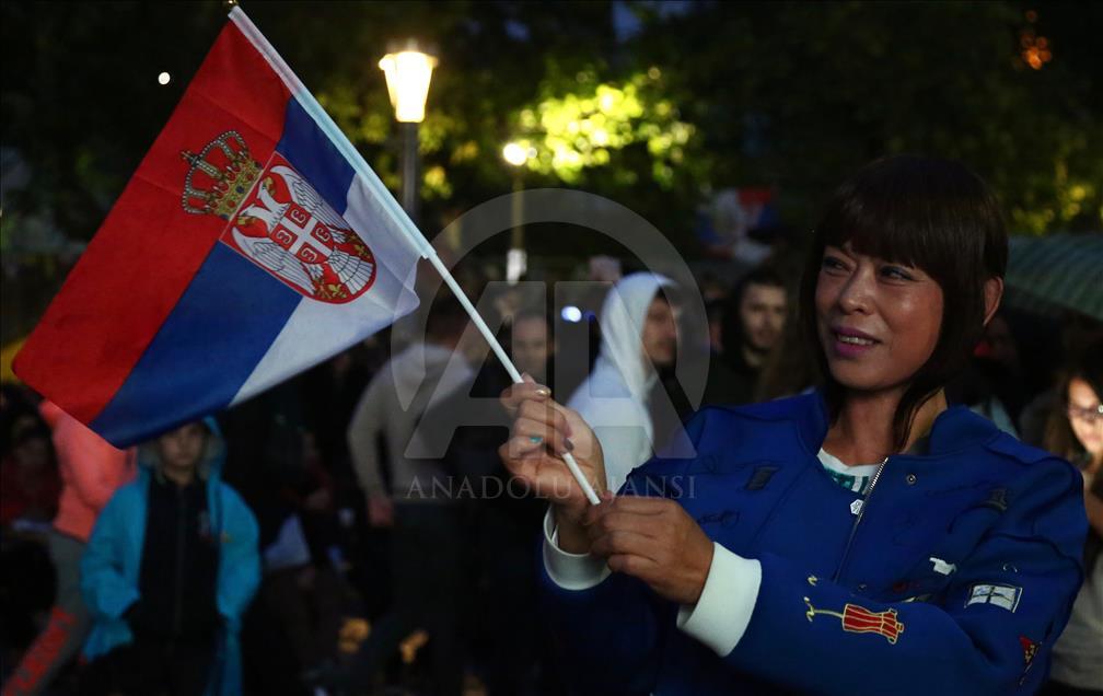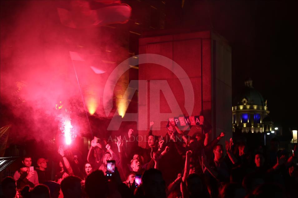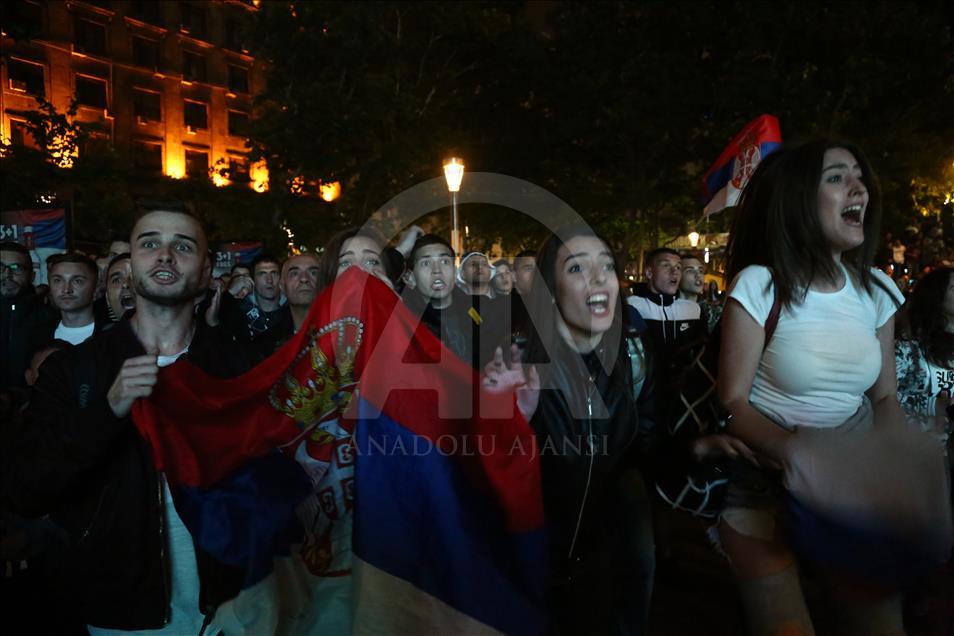 Rusya'da devam eden 2018 FIFA Dünya Kupası Sırbistan'da yakından takip ediliyor. Sırp taraftarlar FIFA Dünya Kupası E Grubu'nda mücadele eden sırp milli takımını bu akşam oynanan Brezilya karşılaşmasında da yalnız bırakmadı. Sırbistan bayrağının renklerine bürünen taraftarlar başkent Belgrad sokaklarında renkli görüntüler oluşturdu. ( Talha Öztürk - Anadolu Ajansı )Talha Öztürk