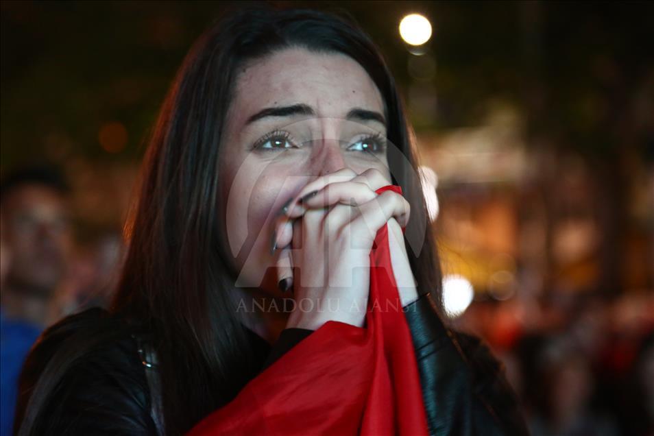 Rusya'da devam eden 2018 FIFA Dünya Kupası Sırbistan'da yakından takip ediliyor. Sırp taraftarlar FIFA Dünya Kupası E Grubu'nda mücadele eden sırp milli takımını bu akşam oynanan Brezilya karşılaşmasında da yalnız bırakmadı. Sırp taraftarlar Brezilya karşılaşmasını başkent Belgrad'daki Nikola Pasic Meydanında kurulan dev ekrandan takip etti. ( Talha Öztürk - Anadolu Ajansı )Talha Öztürk