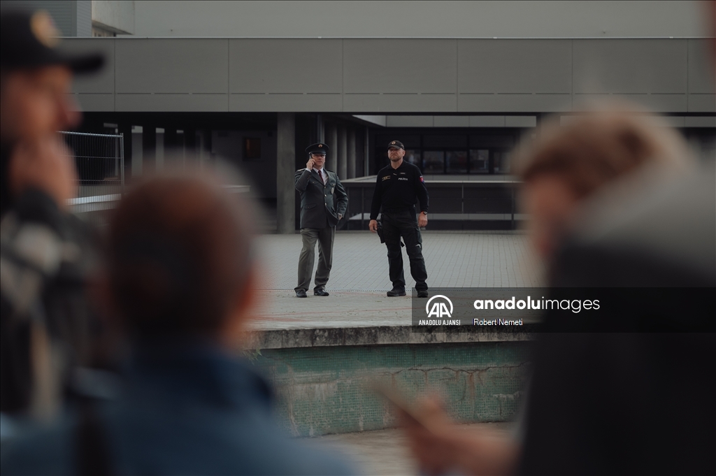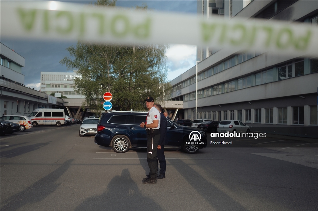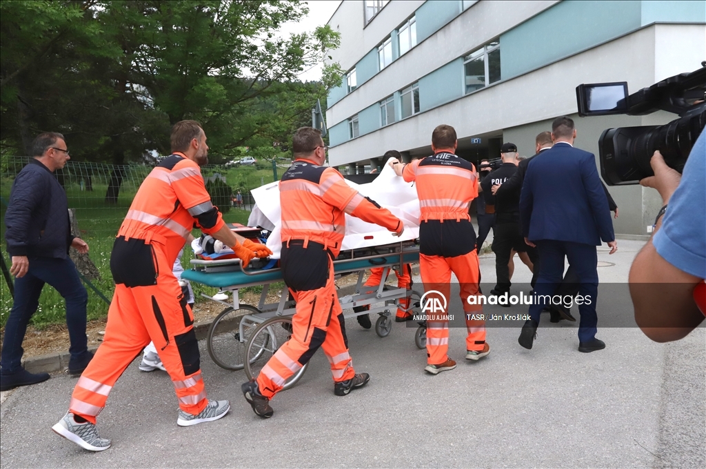 Slovakya Başbakanı Robert Fico, ülkenin Handlova kasabasında düzenlenen Bakanlar Kurulu toplantısı sonrasında düzenlenen silahlı saldırıda yaralandı ve hastaneye kaldırıldı. Polis, başbakan Fico'nun tedavi gördüğü hastanede güvenlik önlemi aldı. ( Robert Nemeti - Anadolu Ajansı )Robert Nemeti