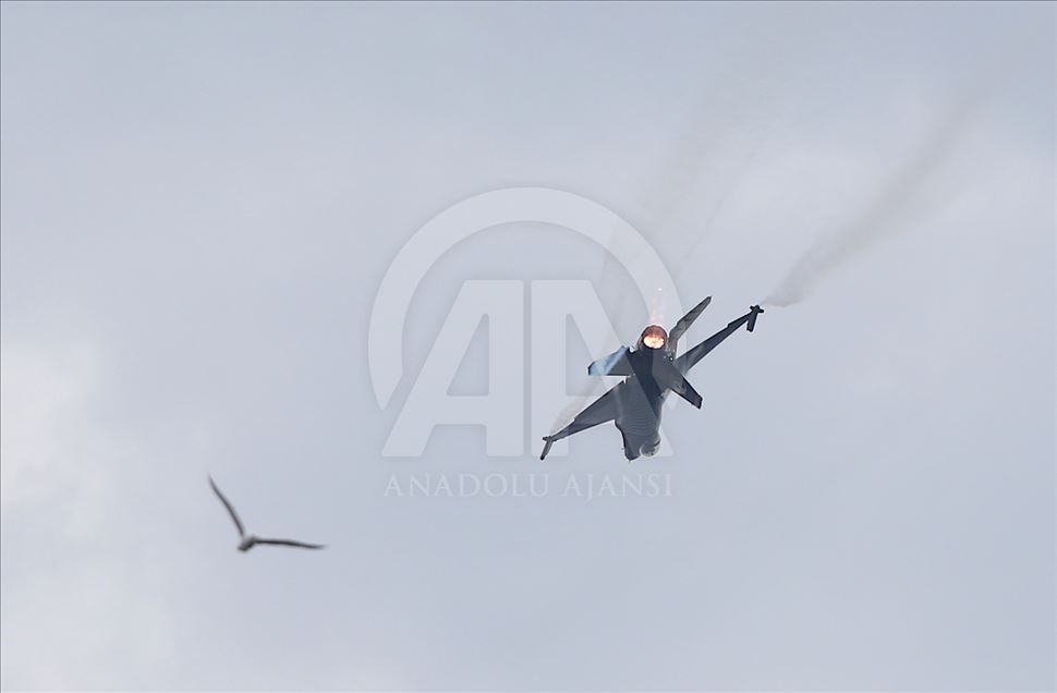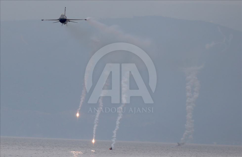 Gökyüzündeki cesur hareketleri ve şovlarıyla uluslararası ödüllere layık görülen Türk Hava Kuvvetlerinin hava akrobasi timi SoloTürk, Mudanya Mütarekesi'nin imzalanmasının 97'nci yılı etkinlikleri kapsamında ilçede gösteri yaptı.