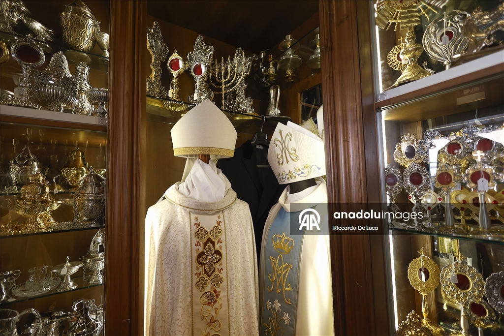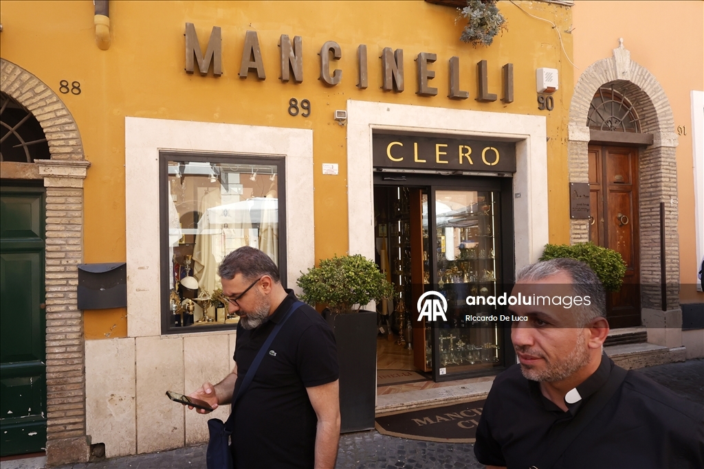 Konklav'ın sonucuyla yakından ilgilenen Vatikan'a komşu Roma'nın Borgo Pio Caddesi'ndeki terzi dükkanı da son günlerde çalışmalarını hızlandırdı. (Riccardo De Luca - Anadolu Ajansı)