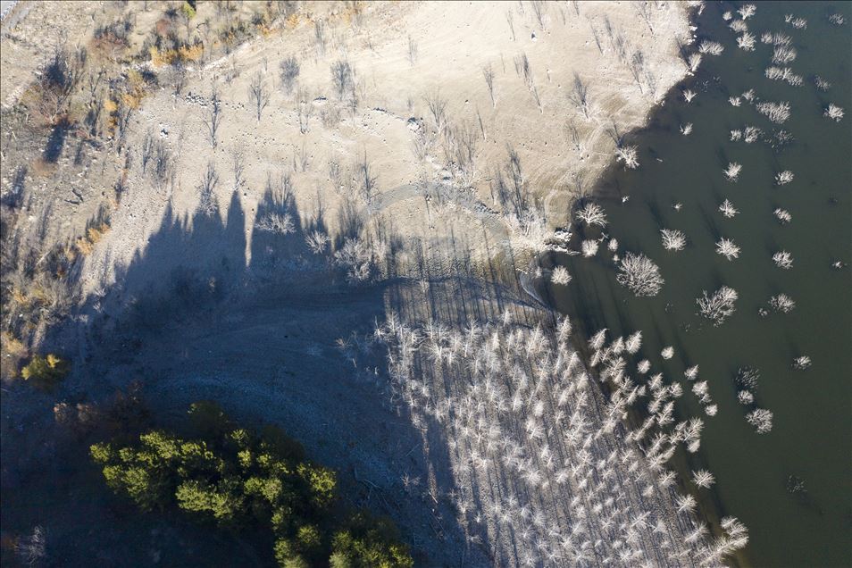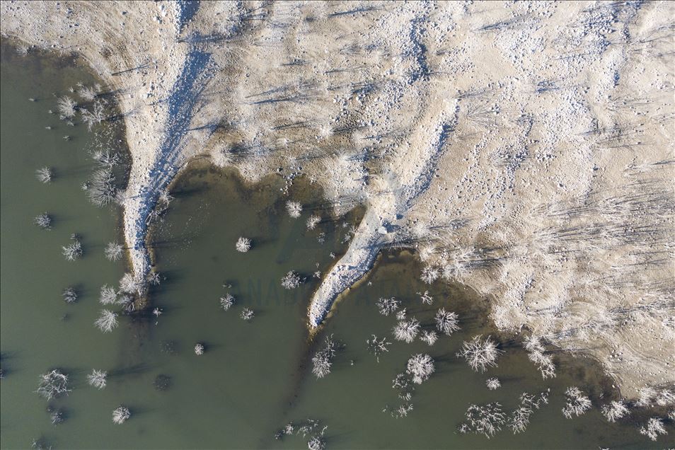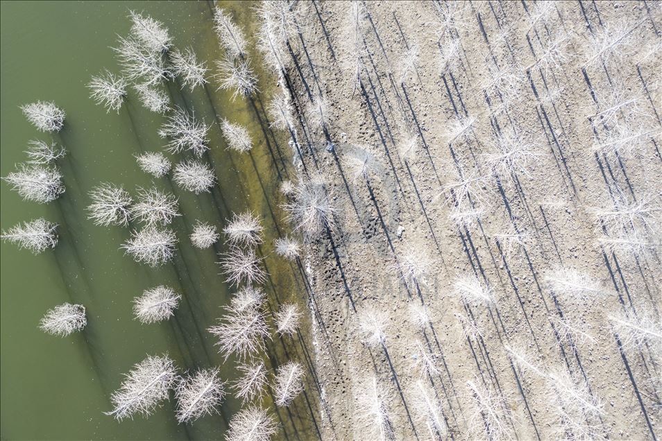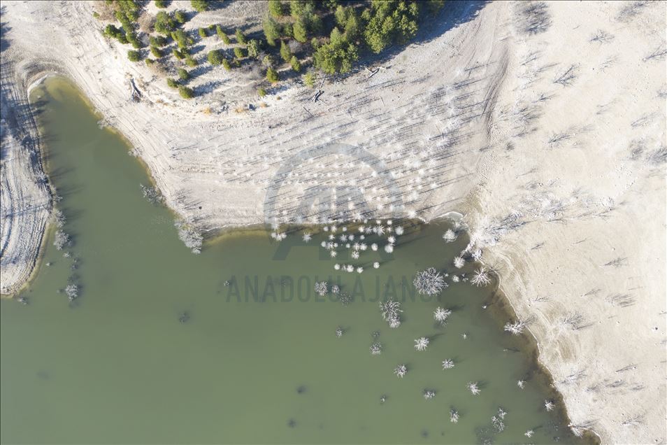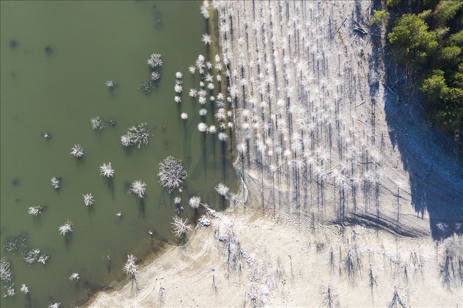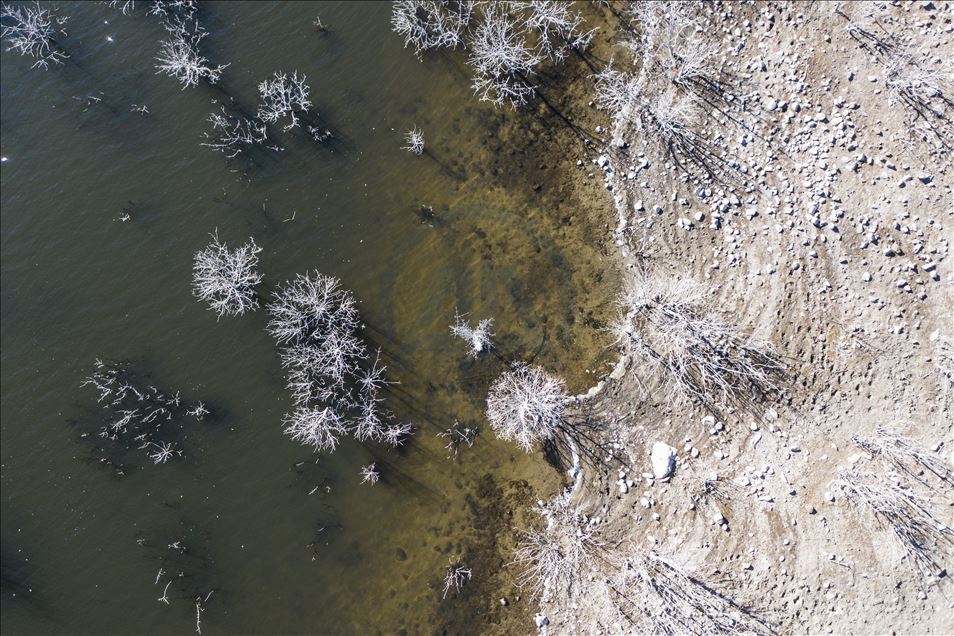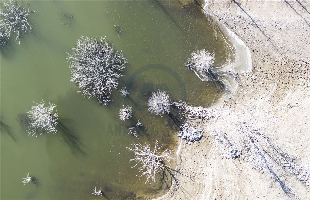 Ankara'nın Kızılcahamam ilçesine bağlı Özçayı Barajı'nda ilkbahar aylarında suların altında kalan ağaçlar, sonbaharda gölet suyunun çekilmesiyle ortaya çıktı. Su yüzeyinde ve kenardaki kurumuş ağaçların üzerindeki beyazlıklar güzel görüntüler oluşturdu.