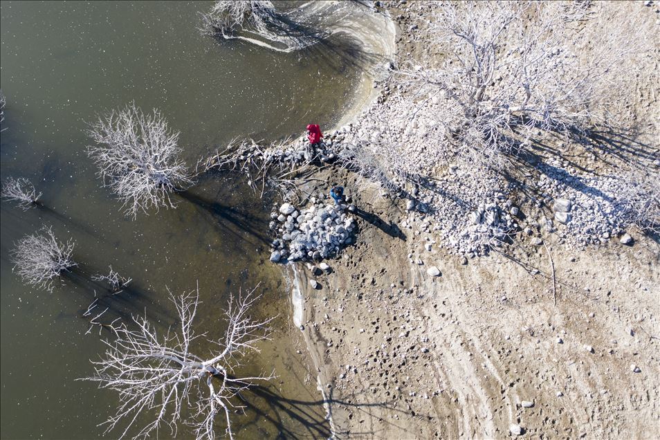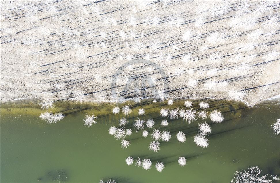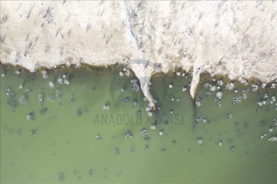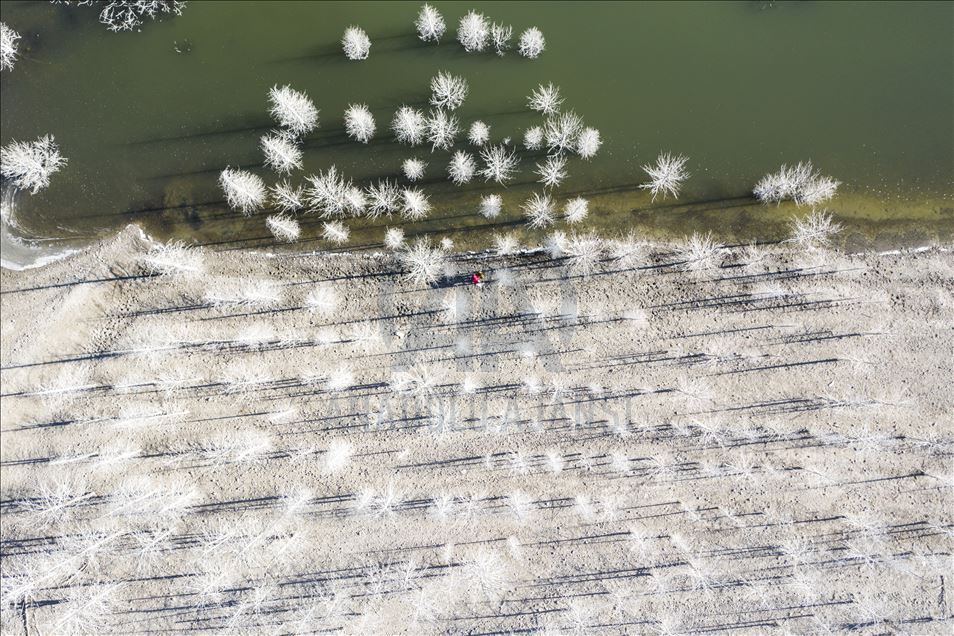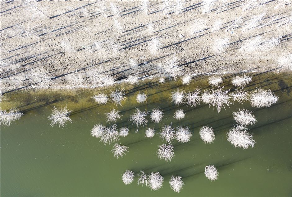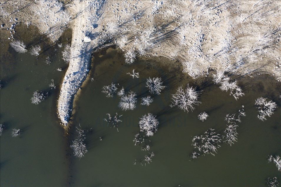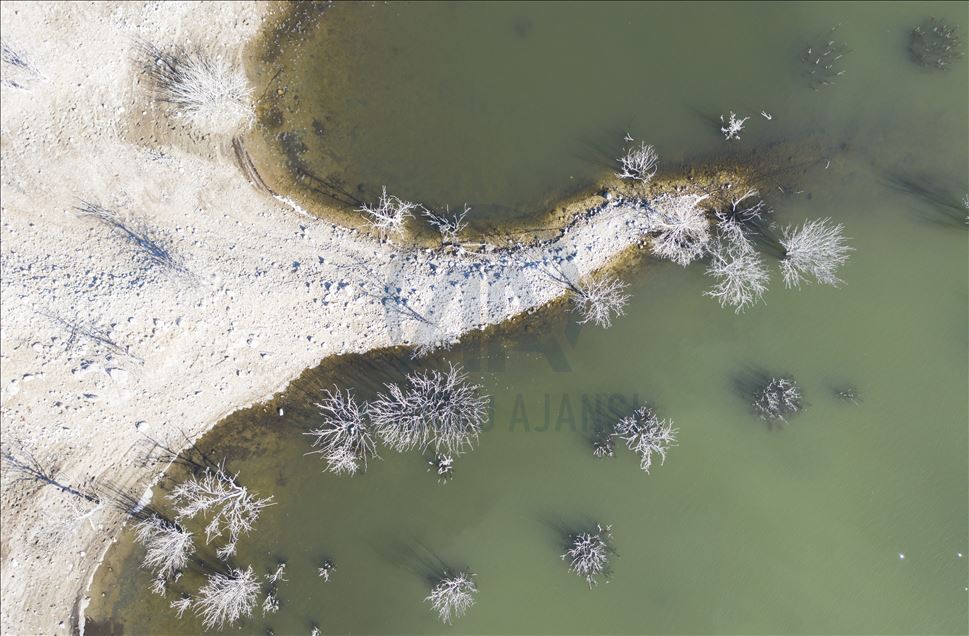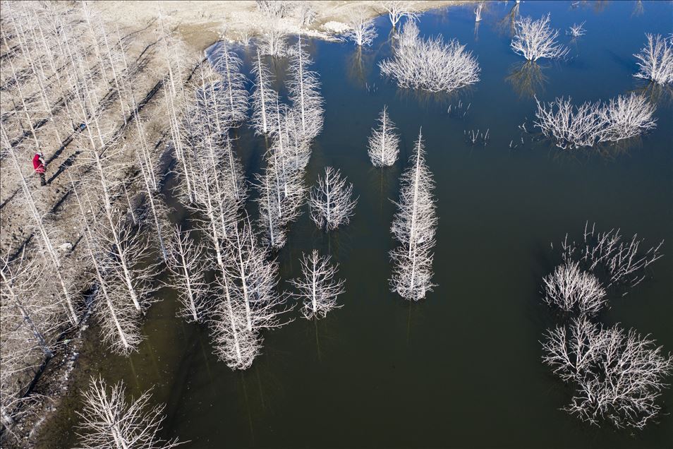 Ankara'nın Kızılcahamam ilçesine bağlı Özçayı Barajı'nda ilkbahar aylarında suların altında kalan ağaçlar, sonbaharda gölet suyunun çekilmesiyle ortaya çıktı. Su yüzeyinde ve kenardaki kurumuş ağaçların üzerindeki beyazlıklar güzel görüntüler oluşturdu.