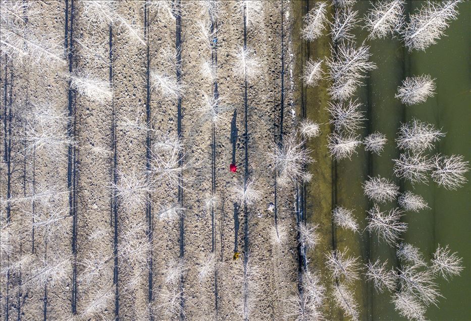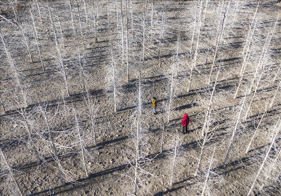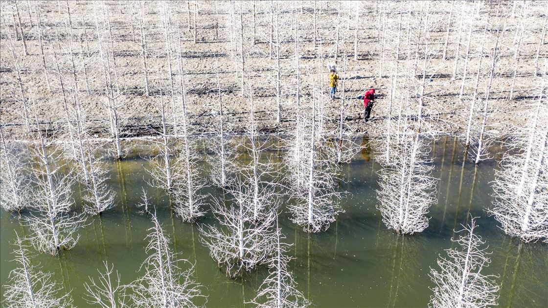 Sonbaharda beyazlaşan kuru ağaçlar güzel görüntü oluşturdu