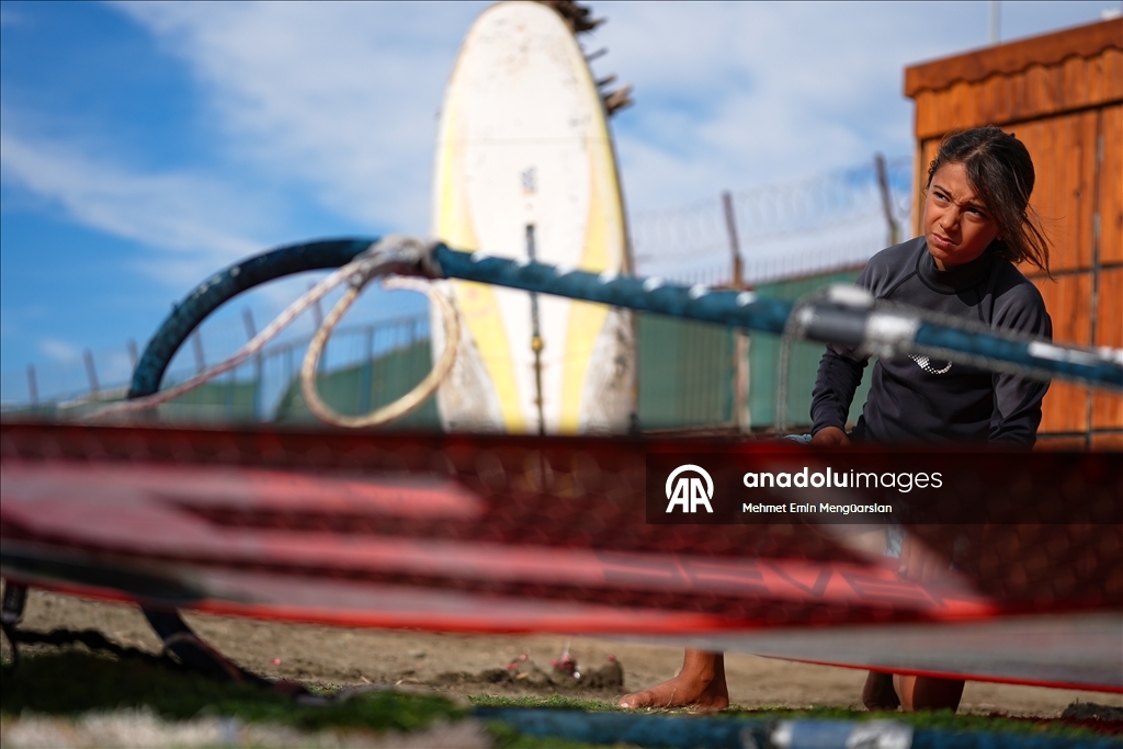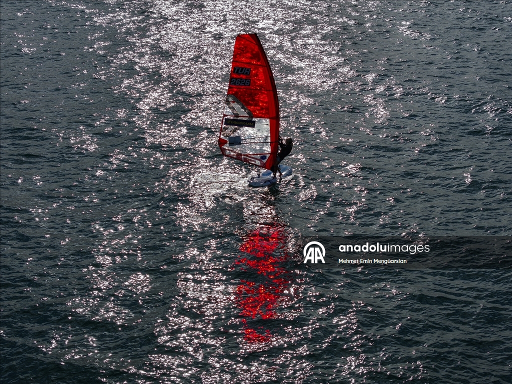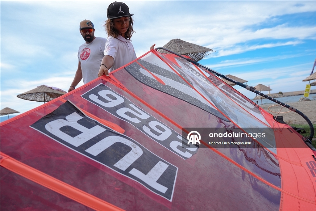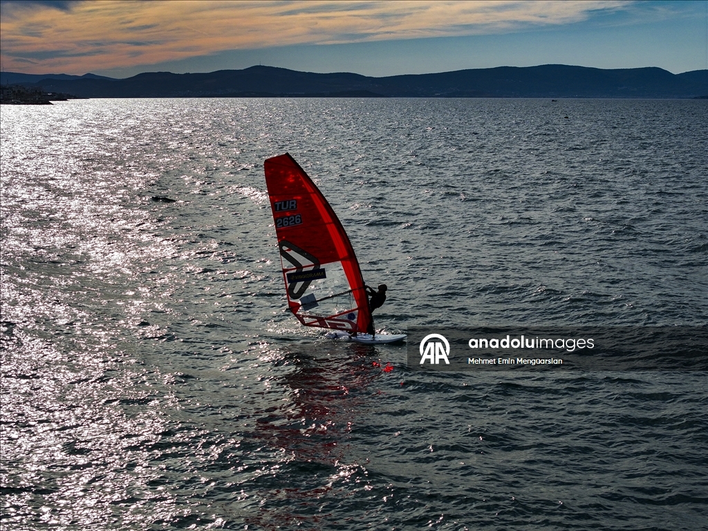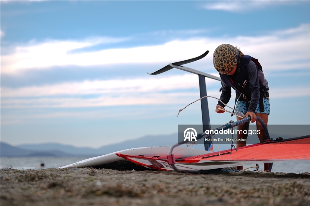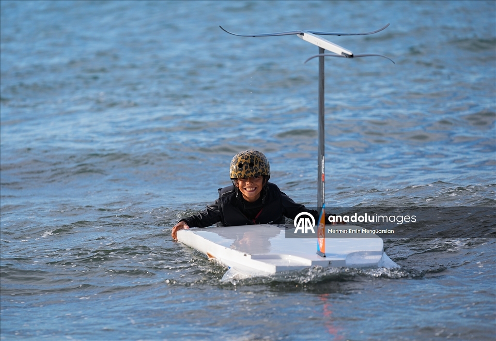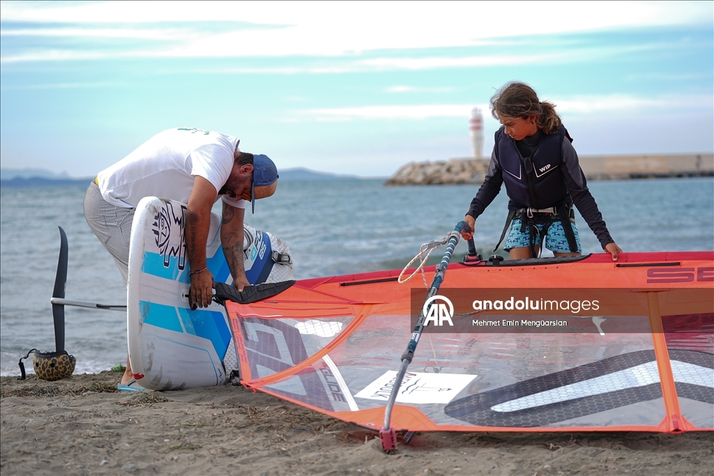 İzmir'de rüzgar sörfüne 2 yıl önce başlayan 12 yaşındaki Poyraz Yetimler, kısa sürede uluslararası organizasyonlarda önemli başarılar elde etti