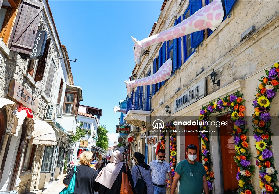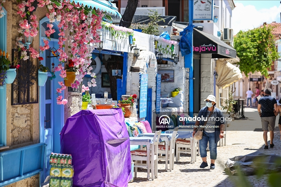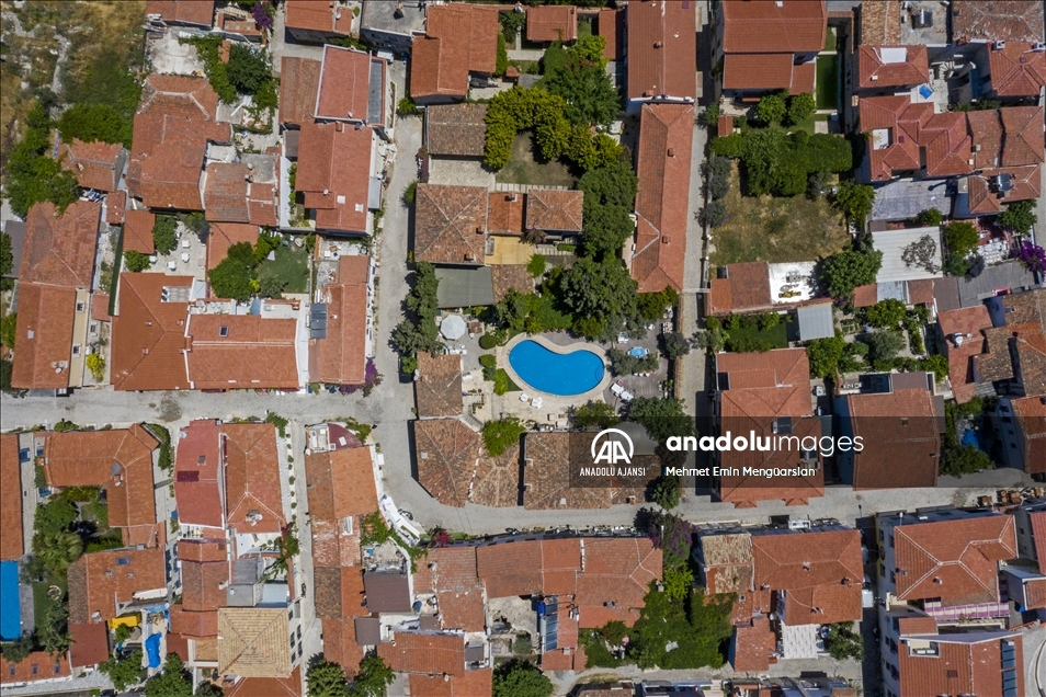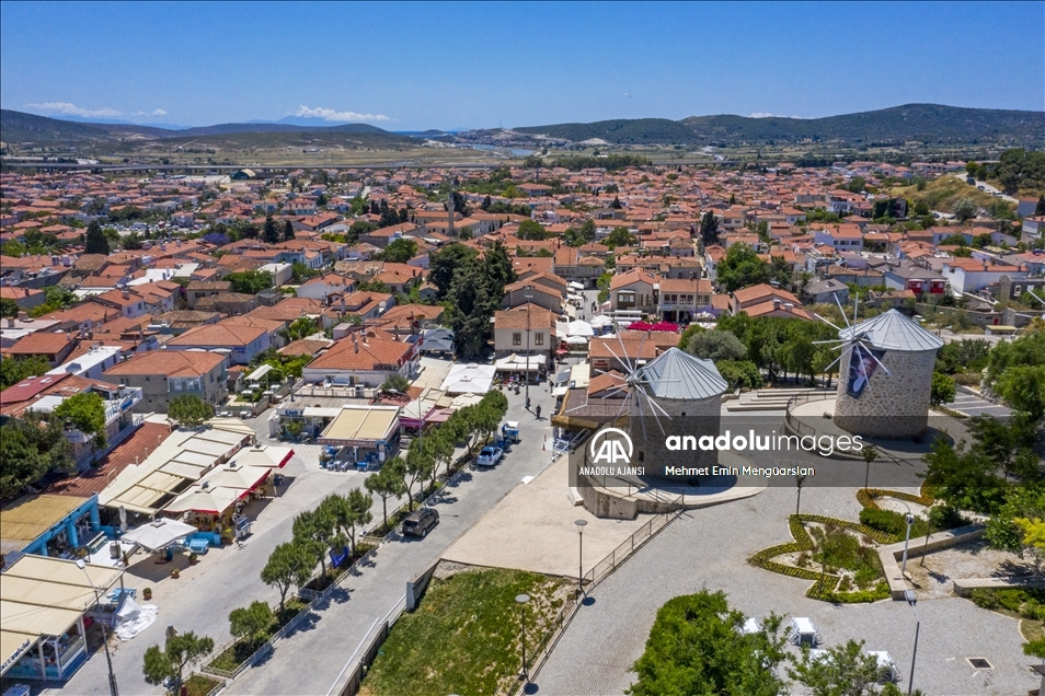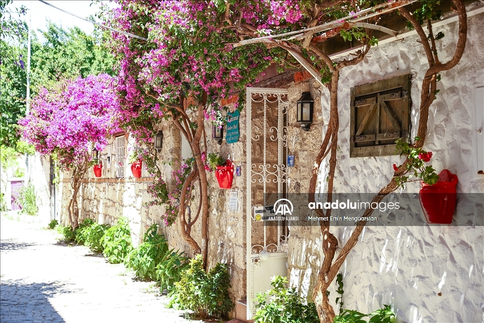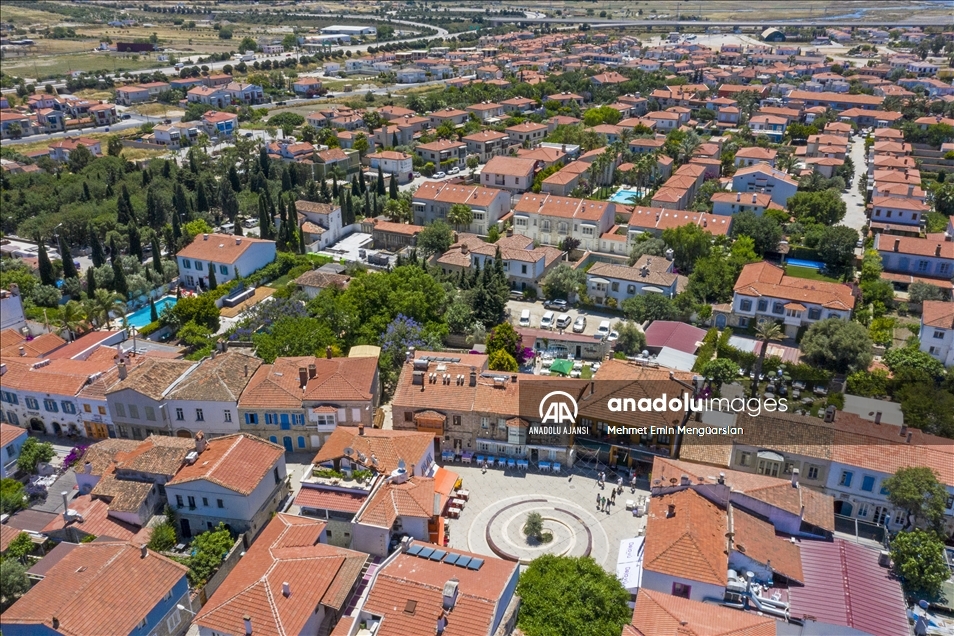 Rüzgar sörfünde Türkiye'nin en önde gelen noktası olan Alaçatı, taş evleri, butik otelleri ve doğal yapısıyla yerli ve yabancı turistleri bekliyor. Osmanlı döneminde piyade ve süvari köyü olarak bilinen Alaçatı, şimdiler de ise adından turizmle söz ettiriyor. Tarihi cumbalı taş evleri ve Arnavut kaldırımları Alaçatı için adeta bir simge. Bu taş binalardan sarkan kırmızı, mor ve beyaz begonviller ise evlerin renkli örtüsü gibi duruyor. ( Mehmet Emin Mengüarslan - Anadolu Ajansı )Mehmet Emin Mengüarslan
